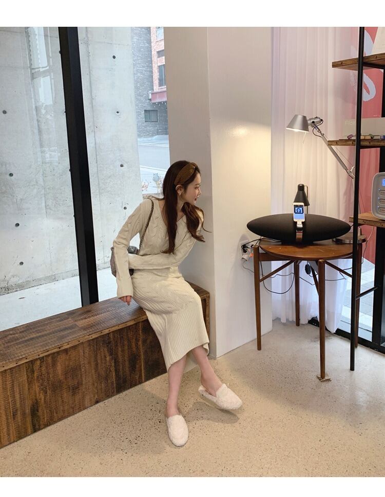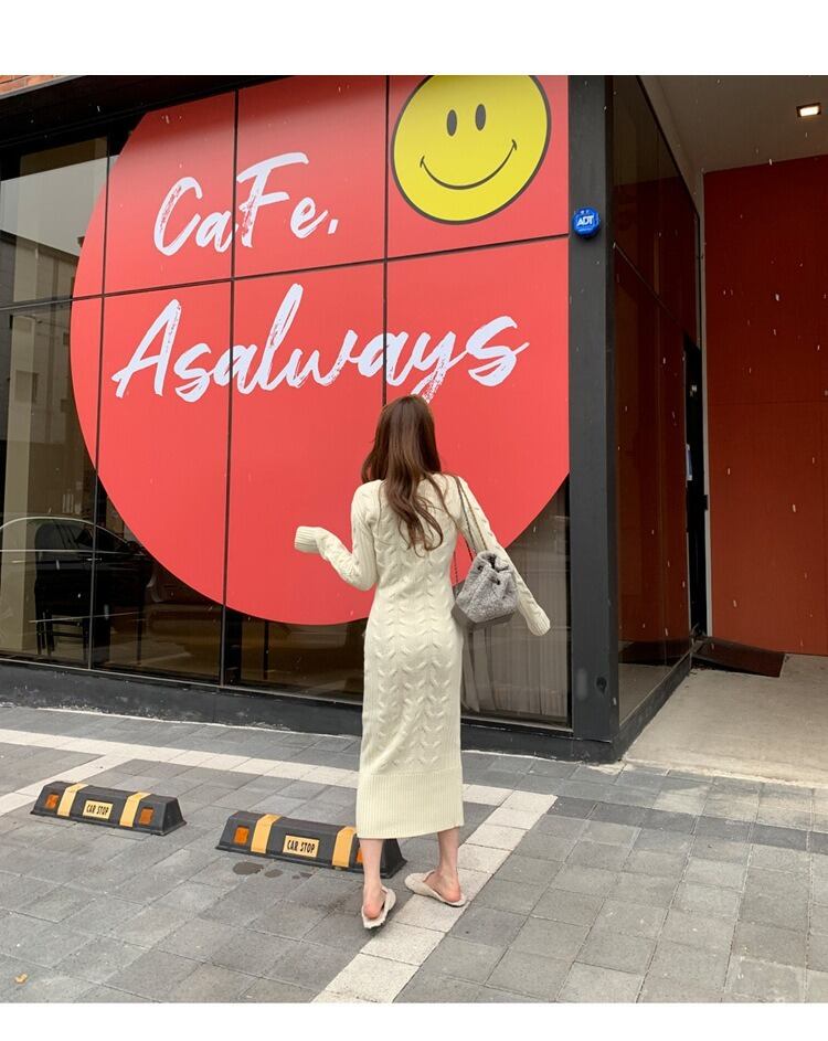 ワンピース ニット ニットワンピース ニットドレス スリム ラウンドネック 長袖 きれいめ 大人 カジュアル エレガント お洒落 こなれ感 クール トレンディ 存在感 個性的 オフィス スタイリッシュ お出かけ ショッピング 休日コーデ ビジネス 女子会 休日 ランチ会 普段使い コーデ スタイル 高見え 格上げ インスタ映え 20代 30代 40代 トレンド 華奢見え デートコーデ ワンサイズ アプリコット 秋 冬