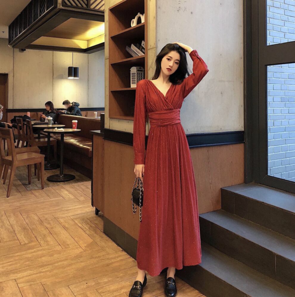 レディース ワンピース ドレス レディース 膝下 ミモレ ロング 長袖 ボリューム袖 Vネック フレア 細身 Aライン 切り替え プリーツ フリル ベルト ウエストマーク ハイウエスト きれいめ 上品 おしゃれ エレガント モダン 主役級 存在感 フォーマル 都会的 クラシカル 無地 秋 冬 花嫁 二次会 披露宴 発表会 パーティー イベント レストラン ホテル 発表会 コンサート 婚活 お呼ばれ 韓国 オルチャン コーデ 体型カバー 脚長 S M L XL 2XL 大きいサイズ 黒 ブラック ピンク レ
