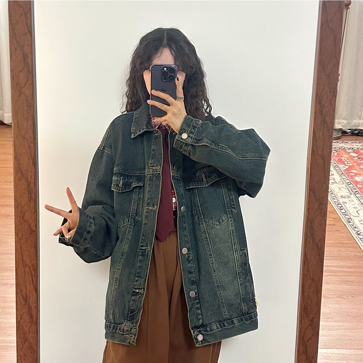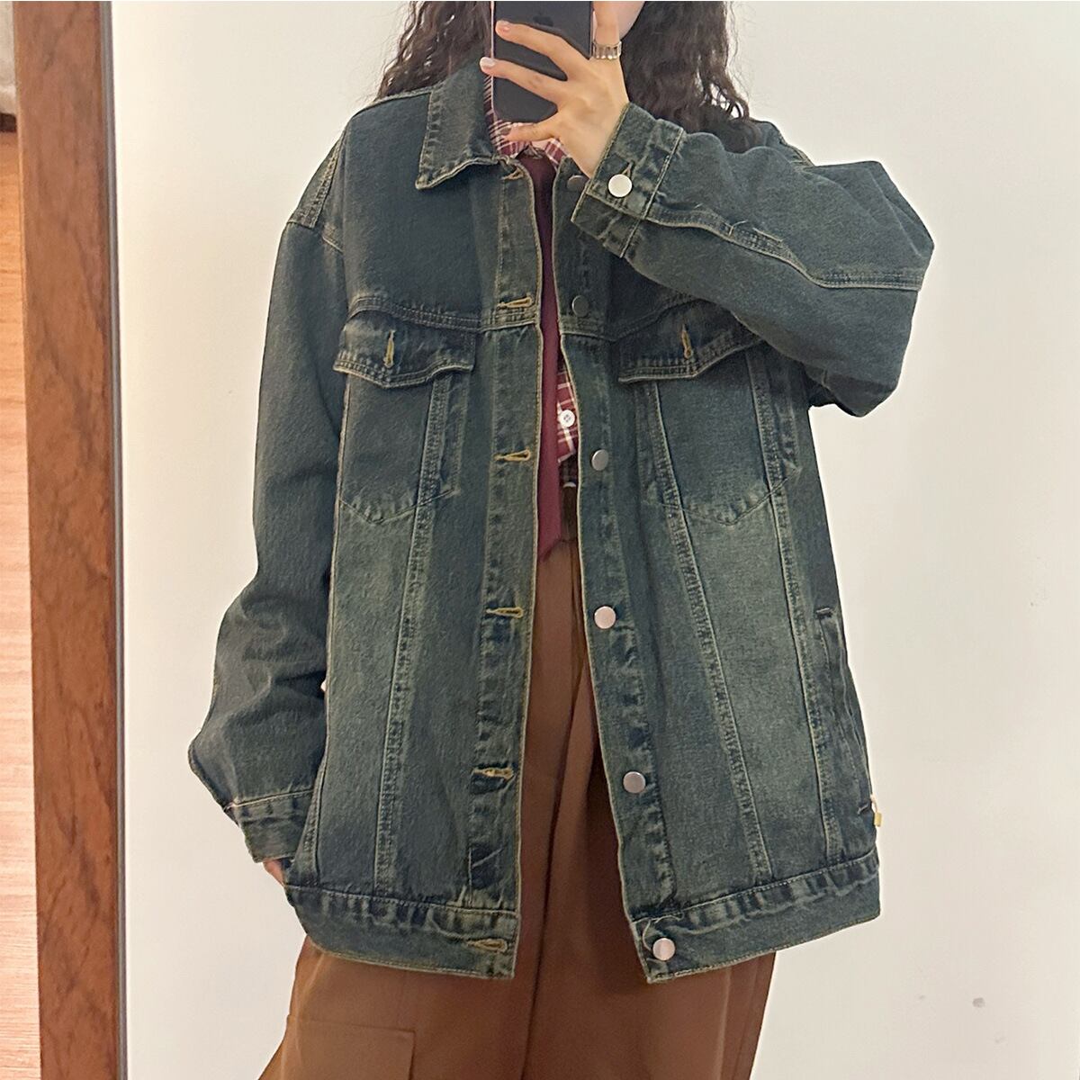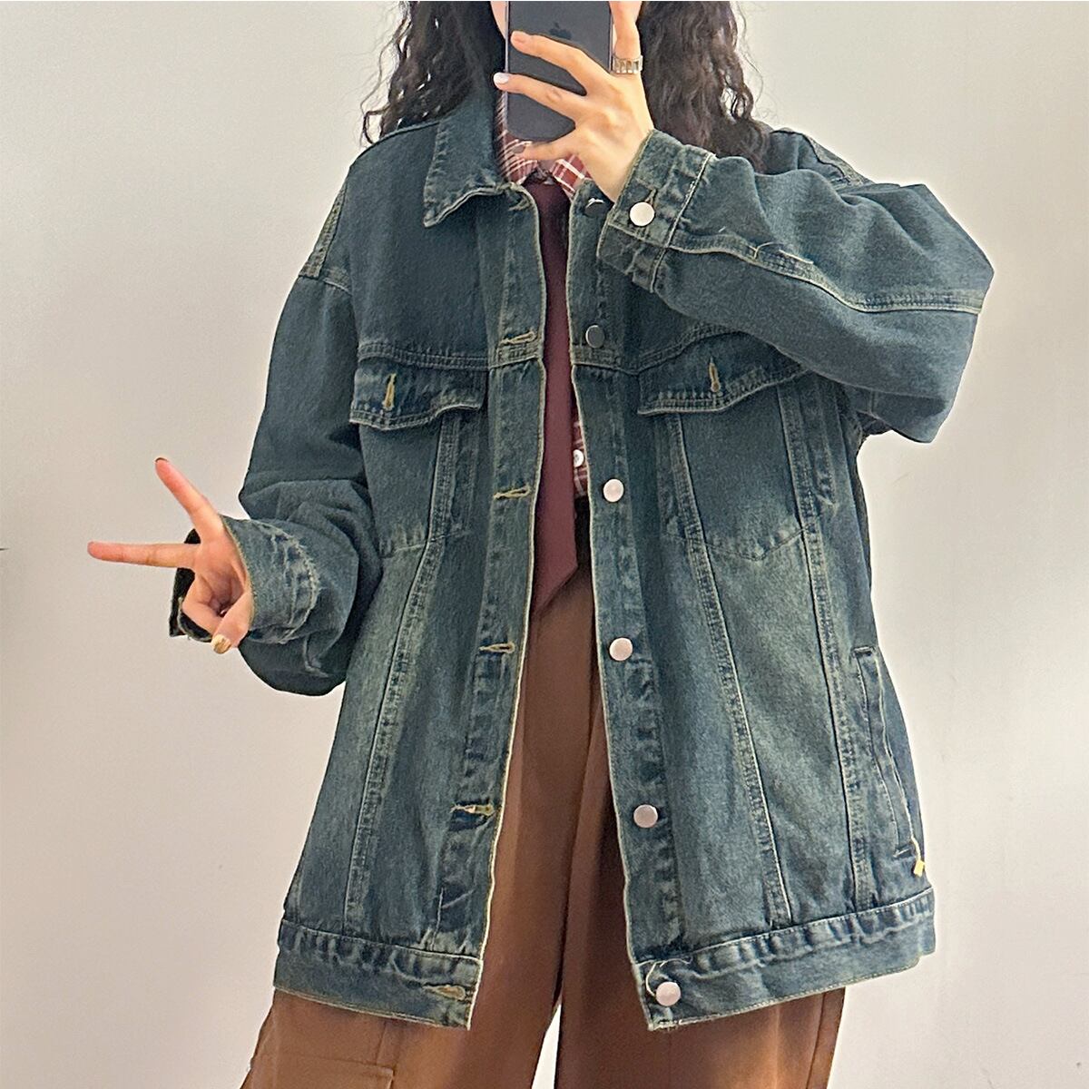 レディース トップス ジャケット アウター 上着 前開き 長袖 襟付き 角襟 フェミニン ポケット ボタン デニム かわいい 大人可愛い きれいめ シンプル カジュアル 上品 おしゃれ かっこいい レトロ こなれ感 ラフ ガーリー ルーズ 個性的 クール モード系 エレガント モダン 主役級 存在感 抜け感 ベーシック カントリー ナチュラル ワイルド 無地 春 秋 デート お出かけ お泊まり ショッピング 重ね着 韓国 オルチャン 普段使い 着回し モテ 清楚 トレンド 流行 インスタ映え 定番 S M