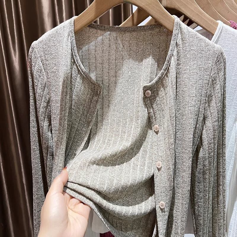 レディース トップス ジャケット カーディガン アウター 上着 前開き 長袖 ラウンドネック フェミニン ボタン かわいい 大人可愛い きれいめ シンプル カジュアル 上品 おしゃれ かっこいい レトロ こなれ感 ラフ 個性的 クール モード系 エレガント モダン 主役級 存在感 抜け感 ベーシック カントリー アクティブ ロマンティック ナチュラル 無地 夏 デート お出かけ お泊まり 重ね着 お揃い 韓国 オルチャン コーデ 普段使い 着回し 清楚 トレンド 流行 インスタ映え 定番 日焼け対策 日焼