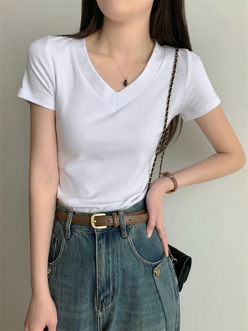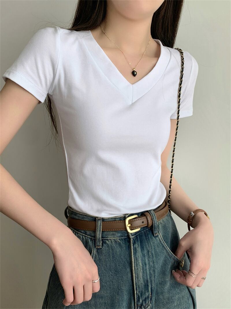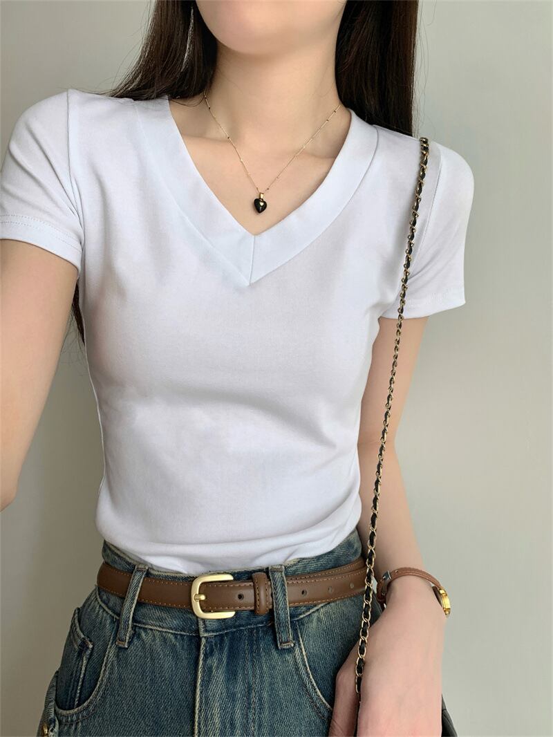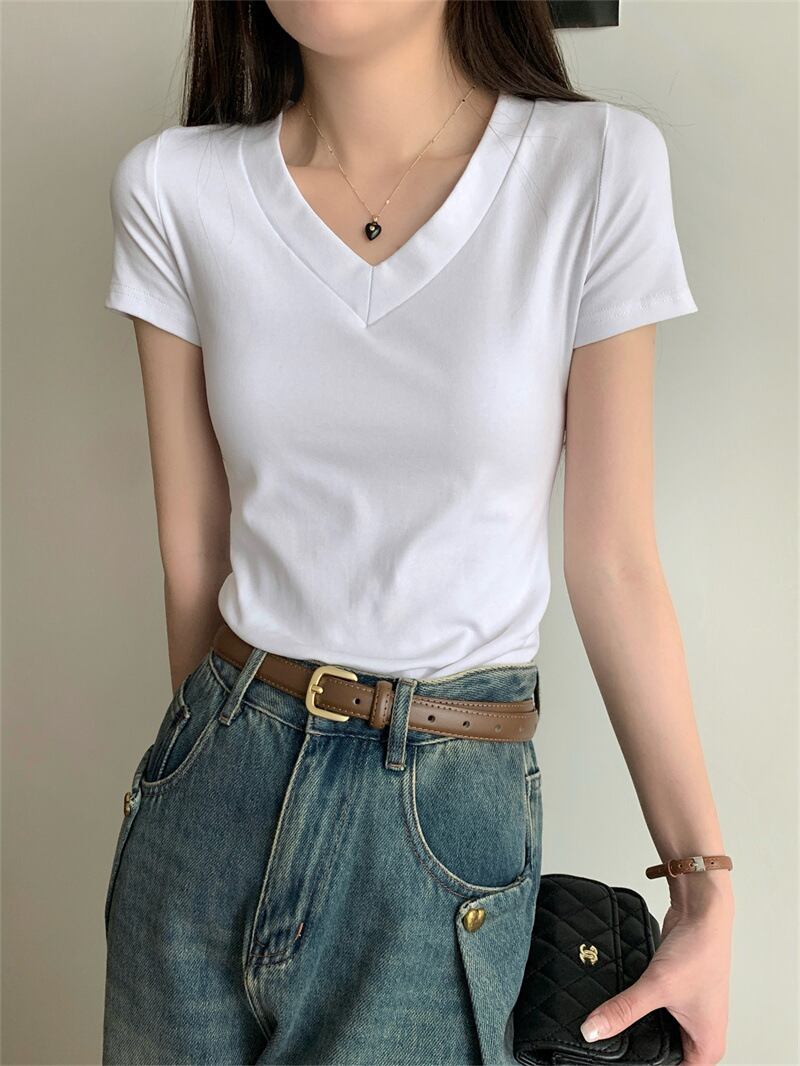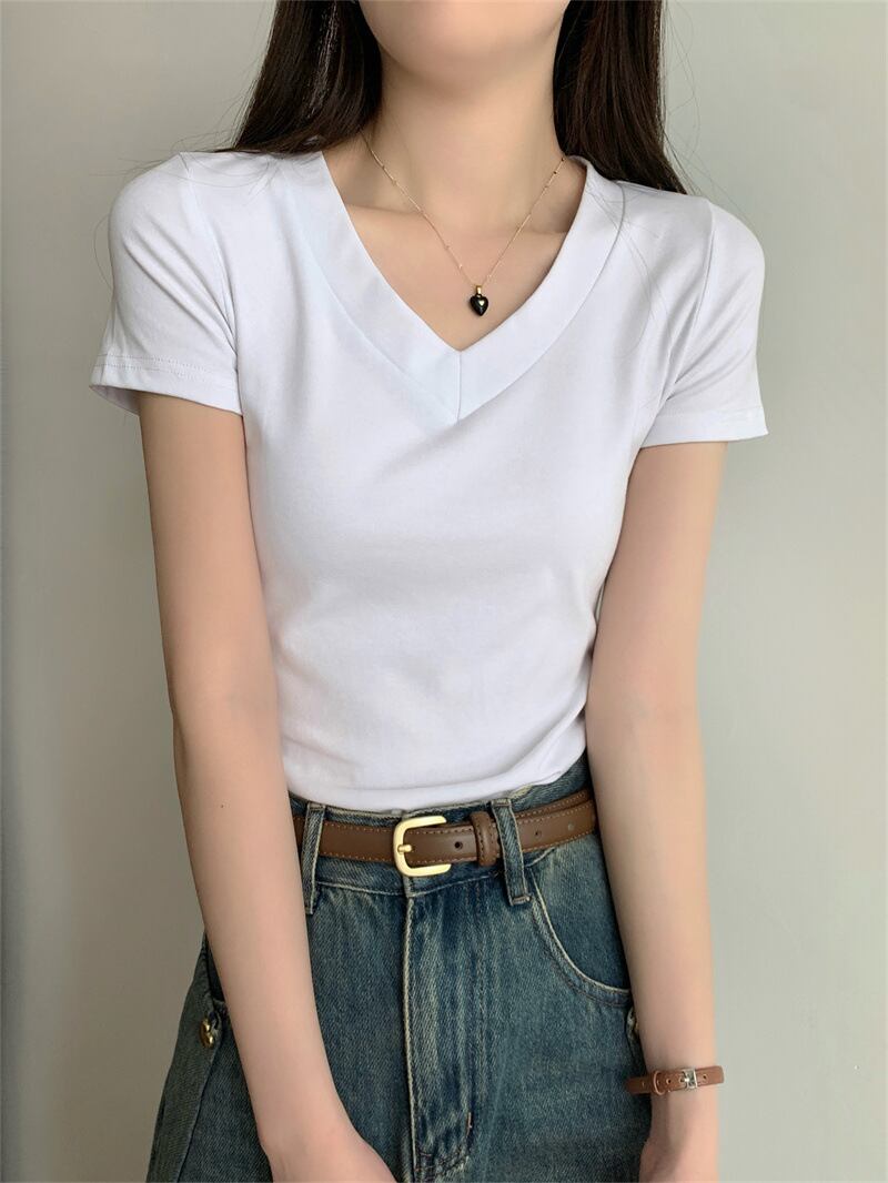 レディース トップス Tシャツ 半袖 Vネック スリム 細身 かわいい 大人可愛い きれいめ シンプル カジュアル 上品 おしゃれ かっこいい レトロ こなれ感 ラフ ガーリー ルーズ 個性的 クール モード系 エレガント モダン 主役級 存在感 抜け感 ベーシック カントリー アクティブ ナチュラル 清潔感 涼しげ 通気性 無地 夏 デート お出かけ お泊まり 公園 女子会 休日 ショッピング 重ね着 お揃い 双子 韓国 普段使い 着回し モテ 清楚 トレンド 流行 インスタ映え 定番 S M L XL