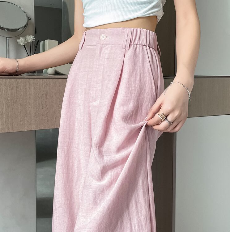 春夏のコーディネートにぴったりなレディースパンツです!ストレートとワイドの2つのシルエットから選べるため、お好みに合わせたスタイルをお楽しみいただけます。シンプルなデザインながらもフェミニンな雰囲気を醸し出し、デートやお出かけに活躍する大人可愛いアイテムです。