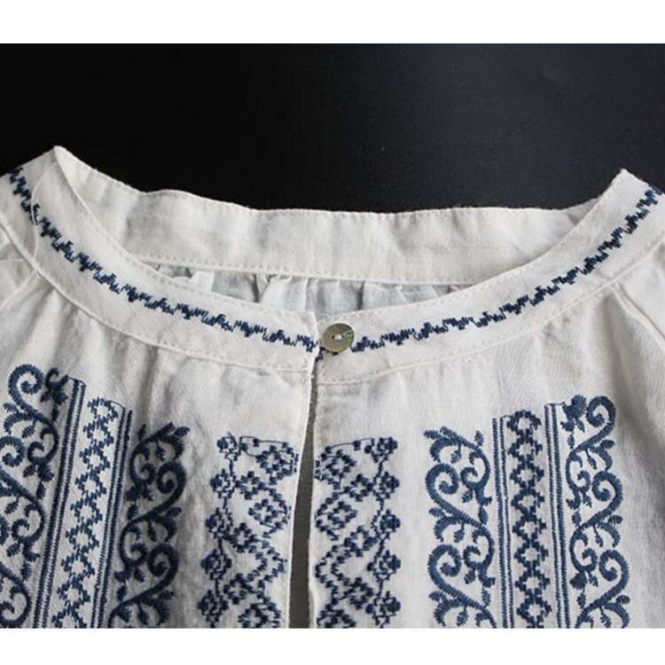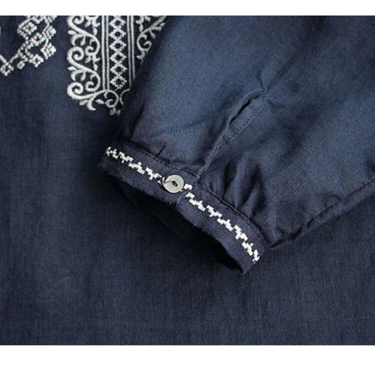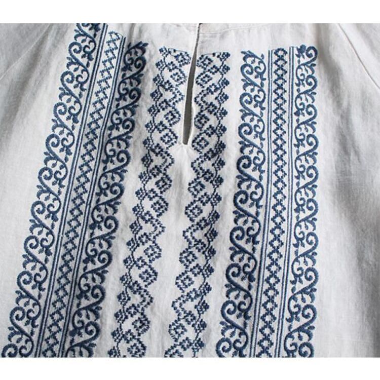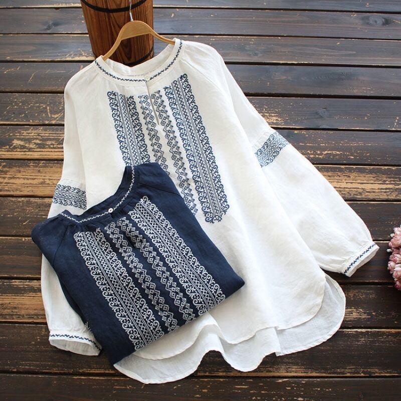 レディース トップス シャツ ブラウス プルオーバー フレア 丈長 長袖 ボリューム袖 ラウンドネック 襟なし ノーカラー フレア 刺繍 大人可愛い カジュアル 上品 おしゃれ レトロ アジアン エスニック こなれ感 ラフ 存在感 キュート ナチュラル 軽やか 爽やか 花柄 フラワー ボタニカル 春 秋 デート お出かけ イベント 旅行 公園 女子会 休日 ショッピング カフェ ランチ コーデ 楽ちん 普段使い 着回し 清楚 M L XL 2XL 3XL 白 ホワイト ネイビー 大人カラー 春カラー