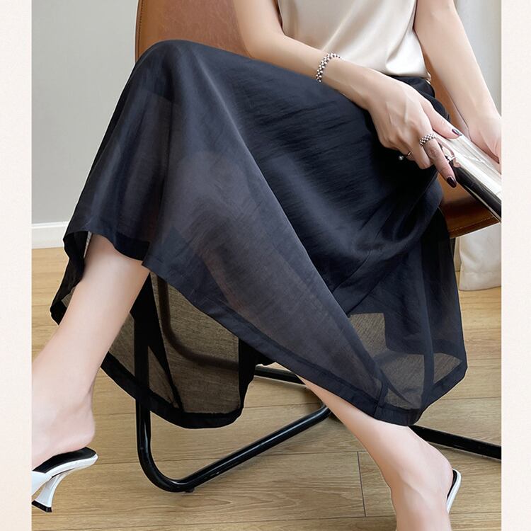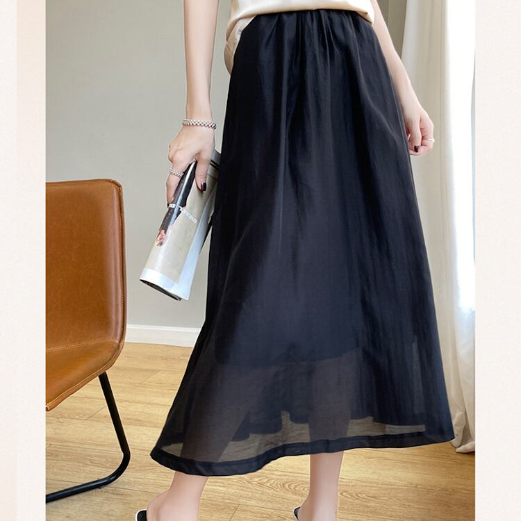 レディース スカート ボトムス ミモレ フレア Aライン フェミニン ポケット ハイウエスト ウエストゴム 透け感 大人可愛い きれいめ シンプル 上品 おしゃれ こなれ感 エレガント 存在感 ロマンティック 涼しげ 軽やか 爽やか 色気 シック 無地 春 夏 デート お出かけ パーティー イベント 旅行 レストラン 女子会 休日 コンパ お呼ばれ オケージョン 脚長 モテ 清楚 M L XL 2XL 大きいサイズ 白 ホワイト 黒 ブラック グレー ベージュ シルバー 光沢 ベーシックカラー 大人カラー