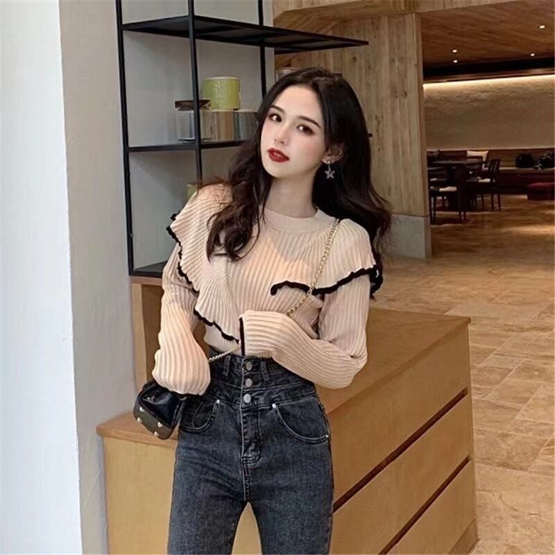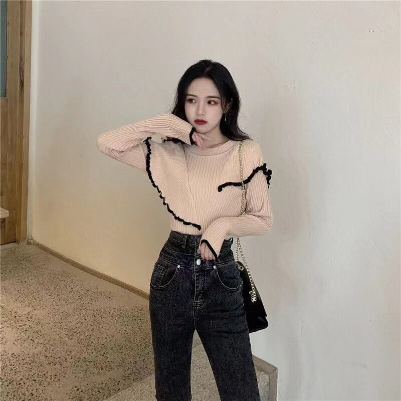 フリルデザインが目を惹くレディースリブニットは、可愛らしさと大人っぽさを兼ね備えた一枚です。肩から胸元にかけてあしらわれたフリルが立体感をプラスし、シンプルながら華やかな印象を演出します。