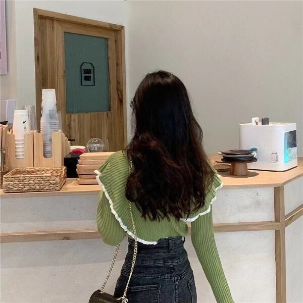 ニットソー レディース トップス ニット プルオーバー アシンメトリー 長袖 ラウンドネック 襟なし ノーカラー タイト スリム 細身 スマート フェミニン フリル リブ バイカラー 配色 リブニット ストレッチ 伸縮性 かわいい 大人可愛い シンプル カジュアル 上品 おしゃれ こなれ感 春 秋 冬 学生 学校 通学 デート お出かけ イベント 旅行 女子会 休日 ショッピング お花見 コンパ カフェ フェス コーデ 普段使い 着回し フリーサイズ ワンサイズ 黒 ブラック ベージュ 緑 グリーン