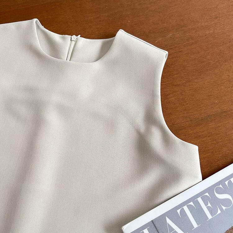 ラウンドネック×Iラインシルエットがすっきりとした印象を与え、身体のラインを美しく見せてくれるデザインです。