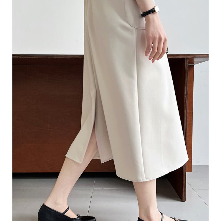 無駄のないシンプルなスタイルながら、スリットやバックスリットのアクセントがさりげない色気を演出。
