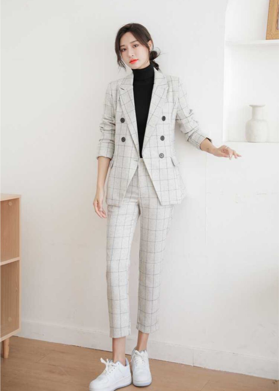 レディース ジャケット スーツ セットアップ レディース ストレートパンツ ツーピーストップス 9分丈 長袖 襟付き ファスナー ポケット ハイウエスト かわいい 大人可愛い カジュアル おしゃれ レトロ こなれ感 ラフ 主役級 存在感 フォーマル カレッジ風 学生風 カントリー チェック 総柄 秋 冬 入学式 入園式 卒業式 卒園式 会議 MTG ミーティング オフィス ビジネス 通勤 就活 お呼ばれ お揃い 双子 韓国 オルチャン コーデ 楽ちん 美脚 脚長 着回し S M L XL ベージュ ネイビ