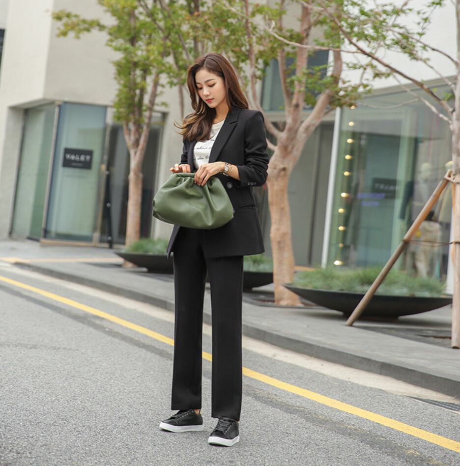 レディース ジャケット パンツ スーツ セットアップ レディース ストレートパンツ ツーピーストップス アンクル丈 長袖 襟付き スリム ストレート ボタン きれいめ シンプル 上品 おしゃれ かっこいい 主役級 都会的 クラシカル ナチュラル 清潔感 軽やか 爽やか シック 無地 春 秋 入学式 入園式 卒業式 卒園式 会議 ミーティング プレゼン オフィス ビジネス OL 通勤 就活 モノトーン お揃い 双子 韓国 オルチャン コーデ 楽ちん 美脚 脚長 着回し S M L XL 黒 ブラック グレー