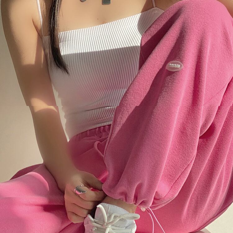 無地やさりげないロゴデザインでシンプルに着こなせるから、部屋着やワンマイルウェアとしてはもちろん、ストリート感のあるデイリーコーデにもおすすめ。