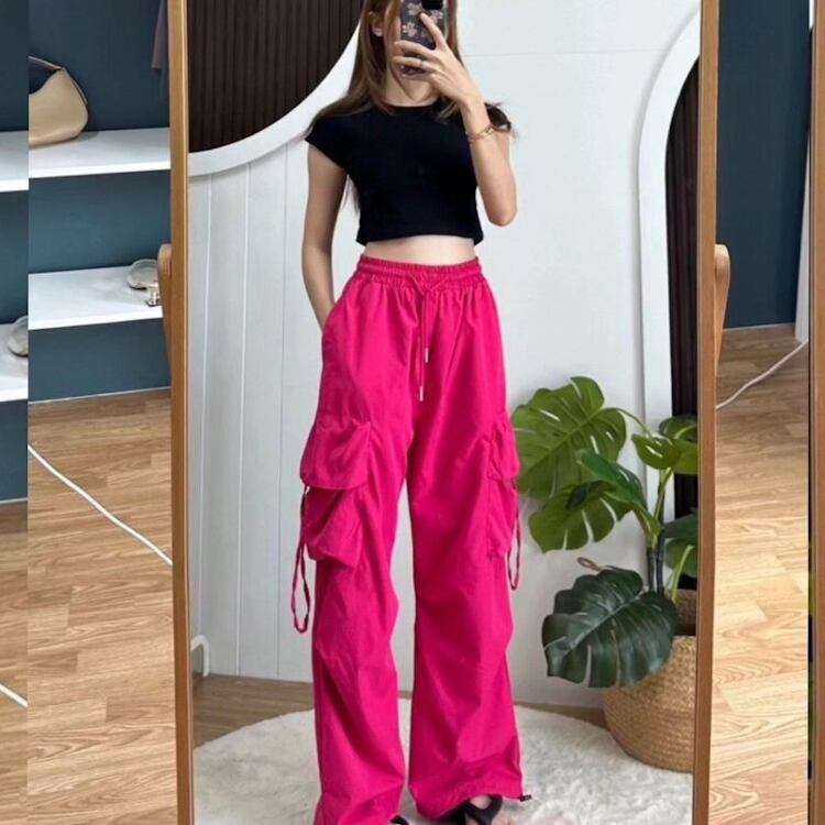 レディース パンツ ボトムス ワイドパンツ カーゴパンツ フルレングス ワイド オーバーサイズ ストリート ウエストゴム ドロスト シンプル カジュアル おしゃれ かっこいい こなれ感 ラフ メンズライク ボーイッシュ スポーティー リラックス 無地 夏 お出かけ アウトドア キャンプ 旅行 公園 女子会 休日 コンサート ライブ ウォーキング 登山 楽ちん M L XL 2XL 3XL 小さいサイズ ゆったり 白 ホワイト 黒 ブラック ダークグレー ワインレッド アーミーグリーン ローズレッド