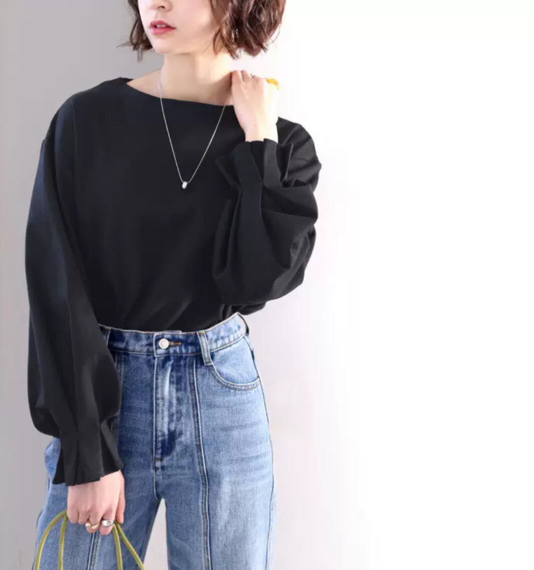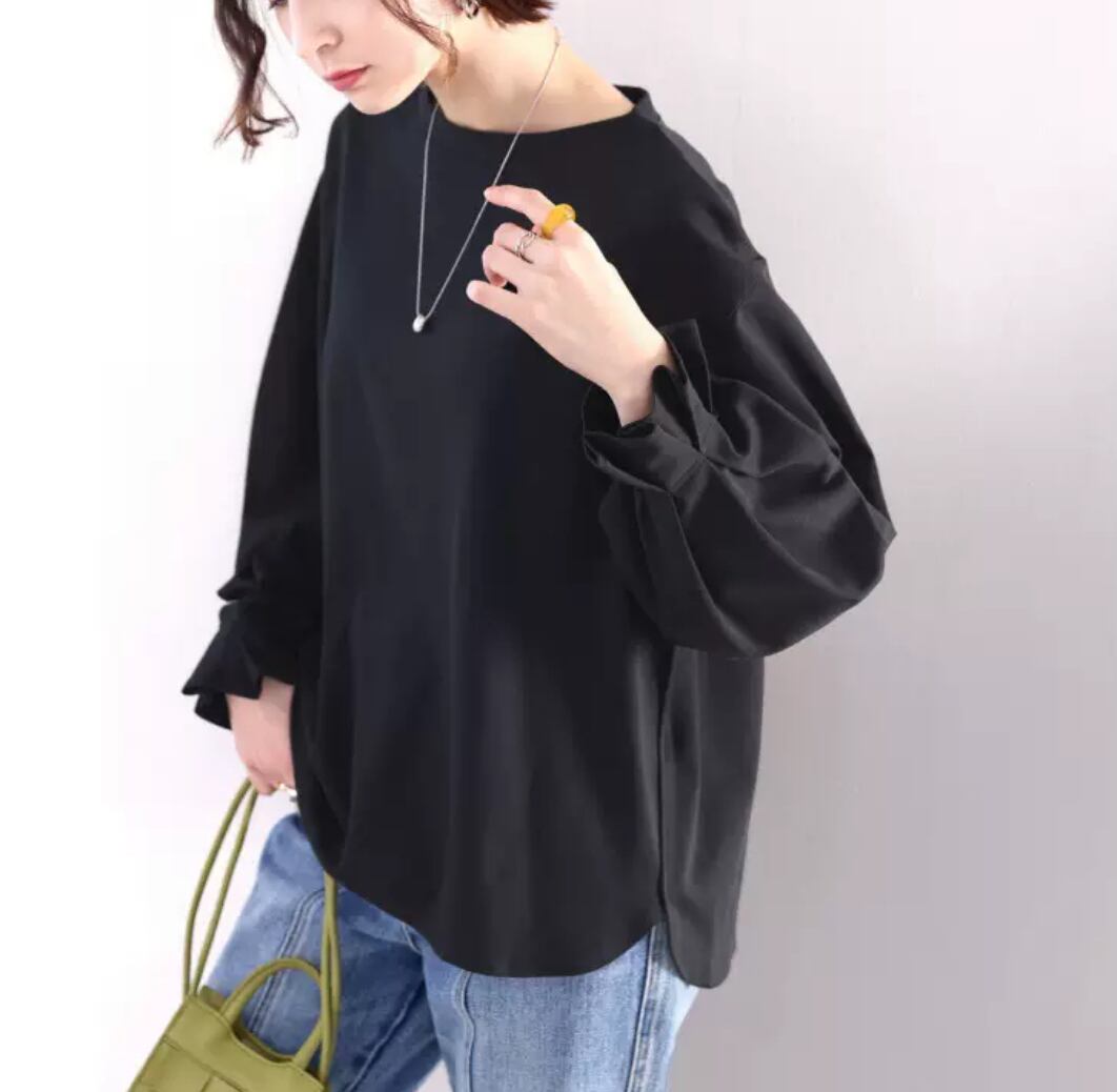 シンプルなデザインながら、カジュアルにもドレッシーにも着こなせるアイテムです。