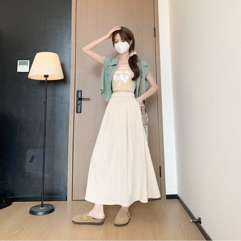 膝下のマキシ丈は、カジュアルながらもおしゃれなこなれ感を演出し、普段使いからデート、学校、リゾートまで幅広いシーンで使えます。