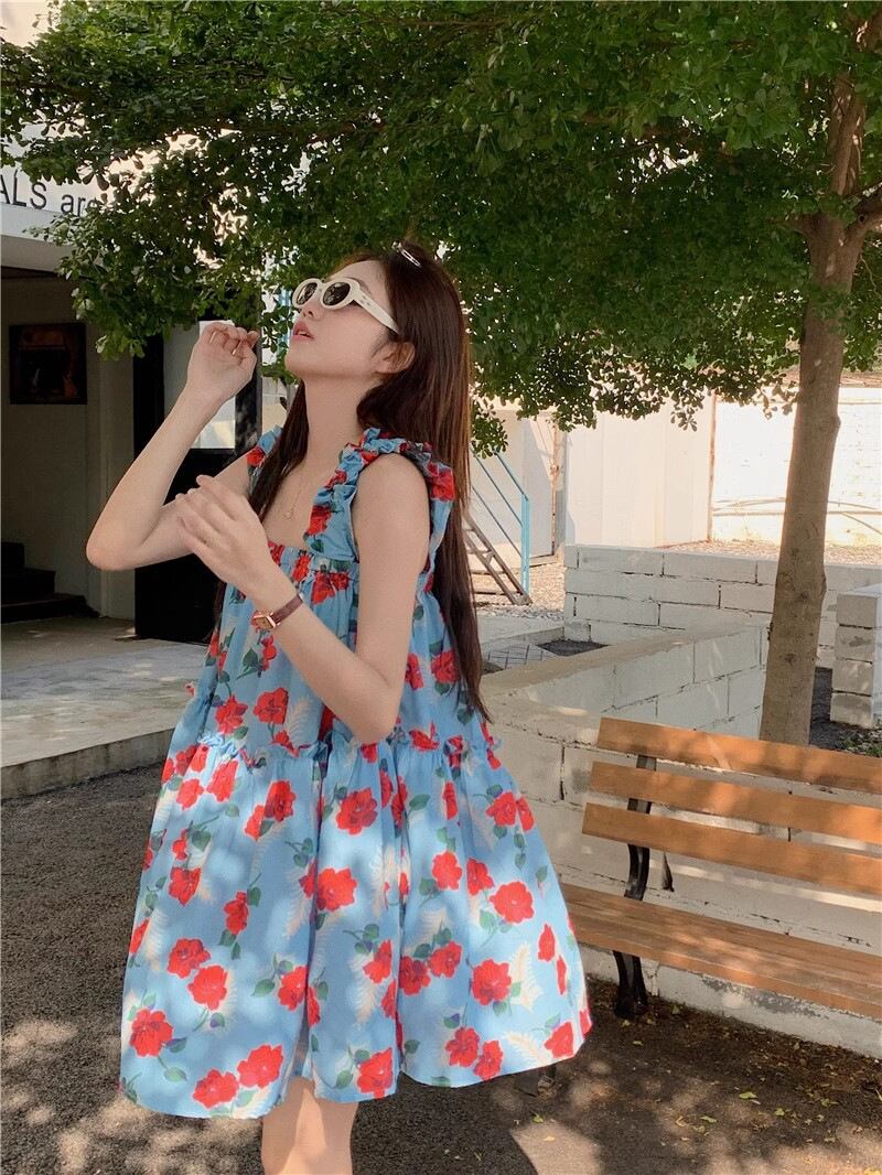 レディース ワンピース ミニ 膝上 袖なし ノースリーブ 肩出し スクエアネック ノーカラー フレア Aライン 裾ワイド ティアード フェミニン フリル ヴィンテージ 肌見せ かわいい 大人可愛い おしゃれ レトロ ガーリー 主役級 存在感 キュート ロマンティック 涼しげ 軽やか 爽やか 花柄 フラワー 総柄 春 夏 ロングシーズン デート お出かけ リゾート 旅行 海 プール ビーチ バカンス 韓国 オルチャン 体型カバー 美脚 着回し レイヤード モテ インスタ映え S M L XL ゆったり