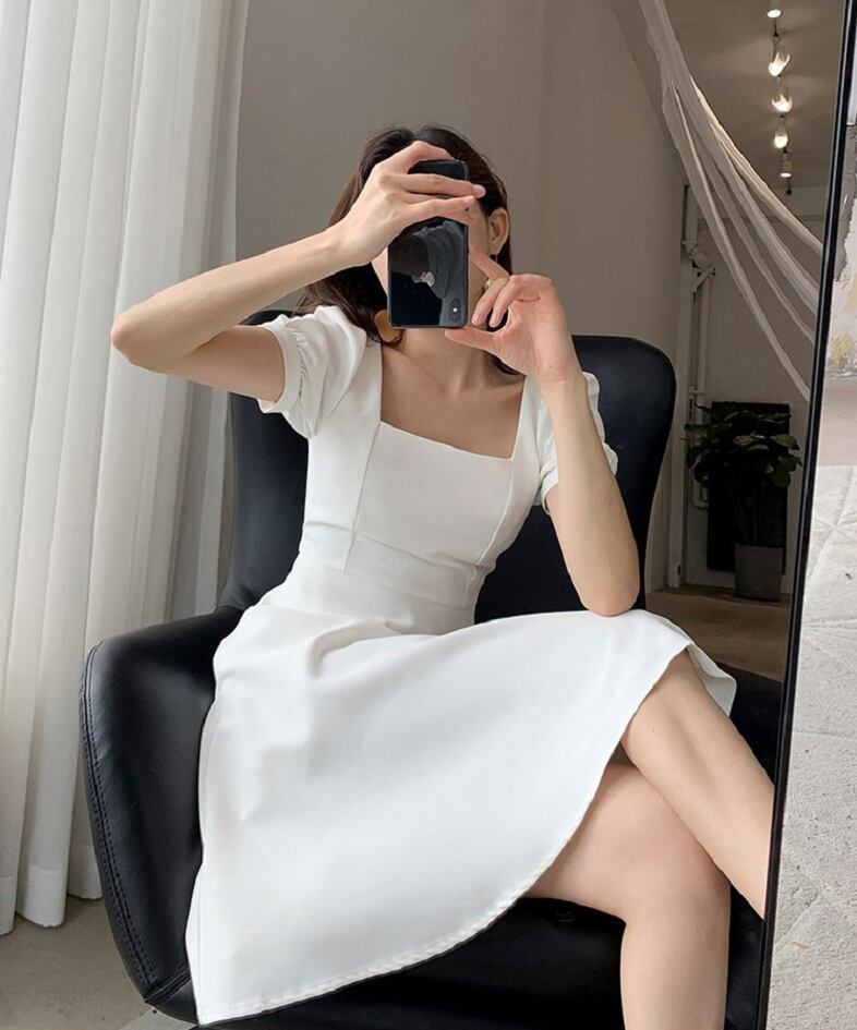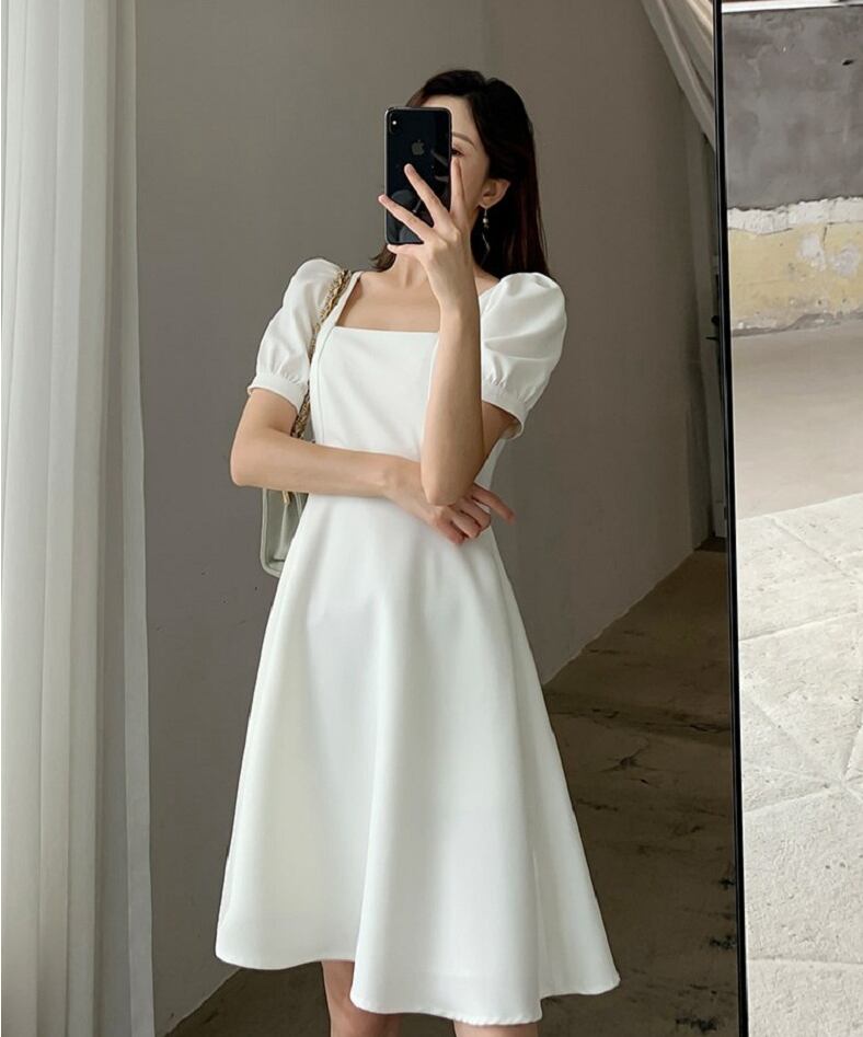 レディース スカート ワンピース ドレス フレアスカート 膝下 ミモレ ミディアム 半袖 バルーン袖 スクエアネック フレア フェミニン かわいい 大人可愛い きれいめ シンプル カジュアル 上品 おしゃれ かっこいい レトロ こなれ感 ラフ ガーリー ルーズ 個性的 クール モード系 エレガント モダン 主役級 存在感 抜け感 ラブリー キュート ゴシック 都会的 ラグジュアリー クラシカル ベーシック カントリー ロマンティック ナチュラル 無地 夏 デート お出かけ お泊まり S M L XL 2X