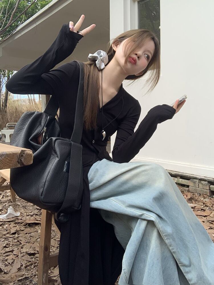フロントに並んだボタンがアクセントになった、ロング丈のカーディガン。シンプルなデザインながら、ボタンの開け閉めで様々な表情を楽しめるのが魅力です。ボタンを全て閉めてワンピースのように着こなせば、一枚でモードなスタイルが完成。ボタンを開けて羽織りとして使えば、シンプルなTシャツとデニムの組み合わせも、一気にトレンド感のあるルックに仕上がります。