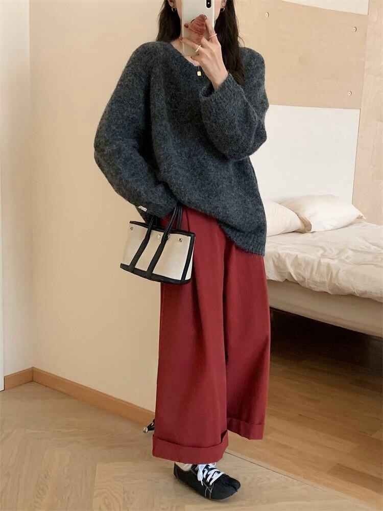 このラウンドネックセーターは、ゆったりとしたデザインで体型カバーも叶え、普段使いからオフィススタイルまで幅広く活躍する一枚です。