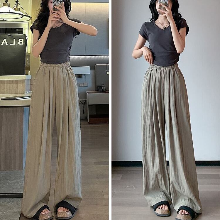 レディース パンツ ボトムス ワイドパンツ 丈長 ワイド フレア フェミニン ストリート ポケット ハイウエスト ウエストゴム ギャザー かわいい 大人可愛い シンプル カジュアル おしゃれ こなれ感 ラフ 涼しげ リラックス 軽やか 爽やか 無地 夏 ママ OL 学生 デート お出かけ 旅行 公園 女子会 休日 ショッピング カフェ ランチ コーデ 楽ちん 脚長 普段使い 着回し M L XL 2XL 大きいサイズ 黒 ブラック 茶色 ブラウン グレー ベージュ カーキ ピンク ブルー グリーン
