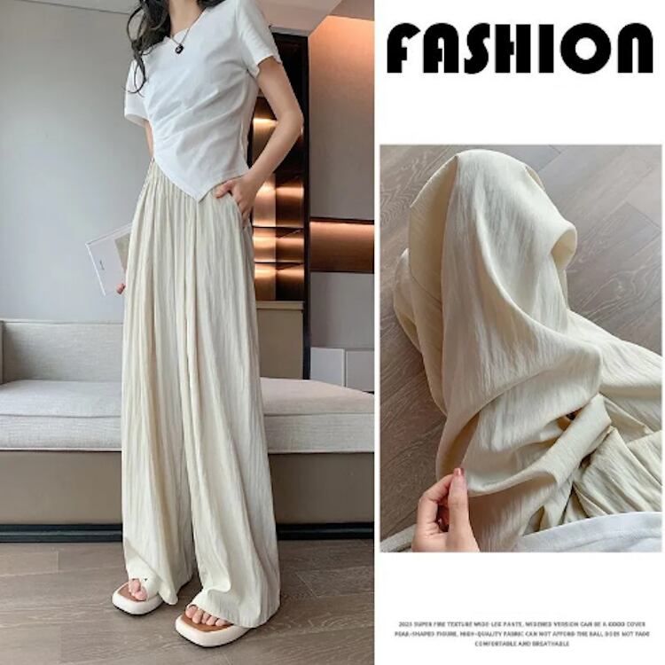脚のラインをきれいに見せながら、ゆったりとした穿き心地が魅力のワイドパンツ。