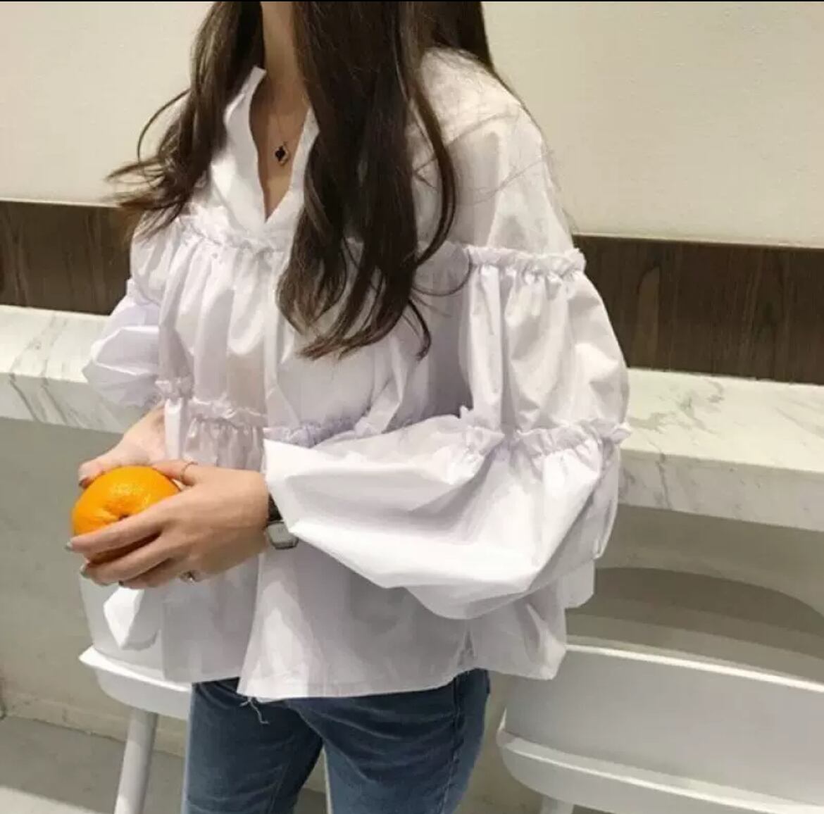 トップス シャツ ブラウス レディース クロップド丈 長袖 パフスリーブ バルーン袖 スリットネック ティアード フェミニン シフォン ギャザー 大人可愛い シンプル カジュアル おしゃれ 存在感 抜け感 ナチュラル リラックス 無地 春 秋 冬 ロングシーズン オフィス OL 通勤 デート お出かけ イベント 女子会 休日 ショッピング カフェ 韓国 オルチャン コーデ 楽ちん 体型カバー 普段使い 着回し モテ 清楚 トレンド スタイルアップ S M L XL 2XL 3XL ホワイト ブラック