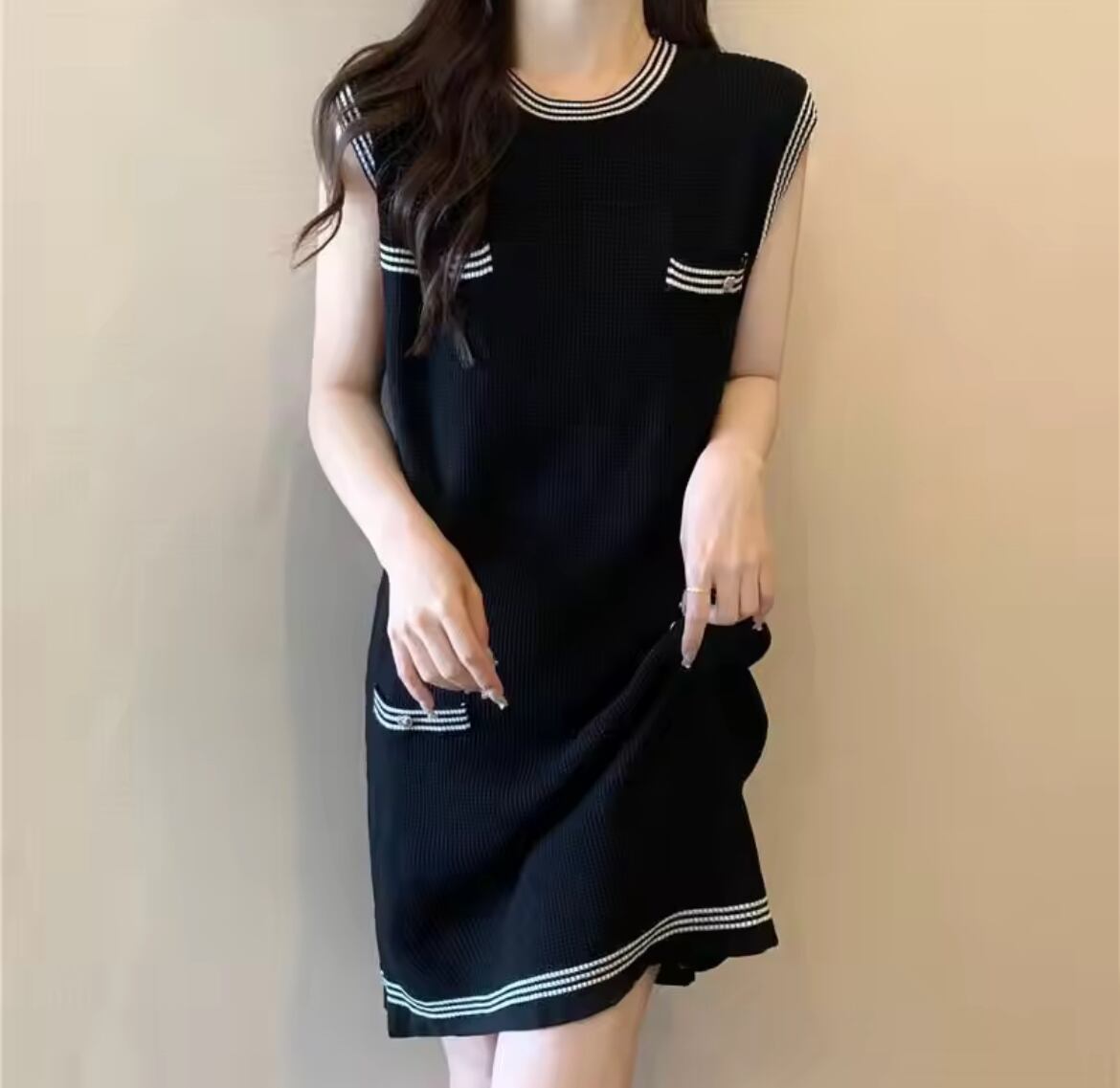 ワンピース サマーニット レディース ミニ 膝上 ノースリーブ クルーネック ストレート フェミニン ワッフル 大人可愛い きれいめ シンプル カジュアル おしゃれ こなれ感 ラフ ガーリー ルーズ 個性的 モード系 存在感 ナチュラル リラックス 軽やか 無地 春 夏 オフィス OL 通勤 デート お出かけ イベント 女子会 休日 ショッピング カフェ ランチ 韓国 オルチャン コーデ 楽ちん 体型カバー 美脚 脚長 普段使い モテ 清楚 トレンド スタイルアップ S M L XL ホワイト ブラック