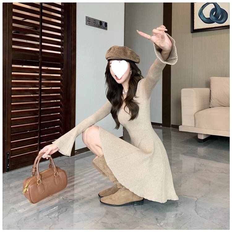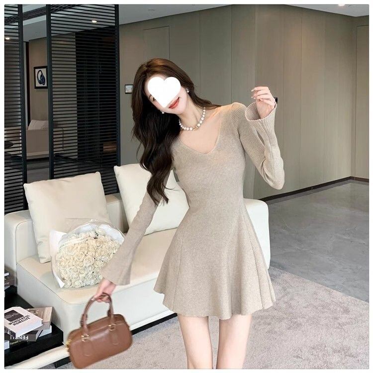 ワンピース レディース タイト 長袖 Vネック フェミニン かわいい 大人可愛い きれいめ シンプル 上品 おしゃれ レトロ こなれ感 ラフ エレガント 抜け感 ラブリー キュート ロマンティック ナチュラル 無地 秋 冬 デート お出かけ イベント 旅行 女子会 バカンス お花見 コーデ 楽ちん 体型カバー 美脚 脚長 ゆったり ゆる S M L XL ブラック コーヒー レッド 定番カラー 大人カラー