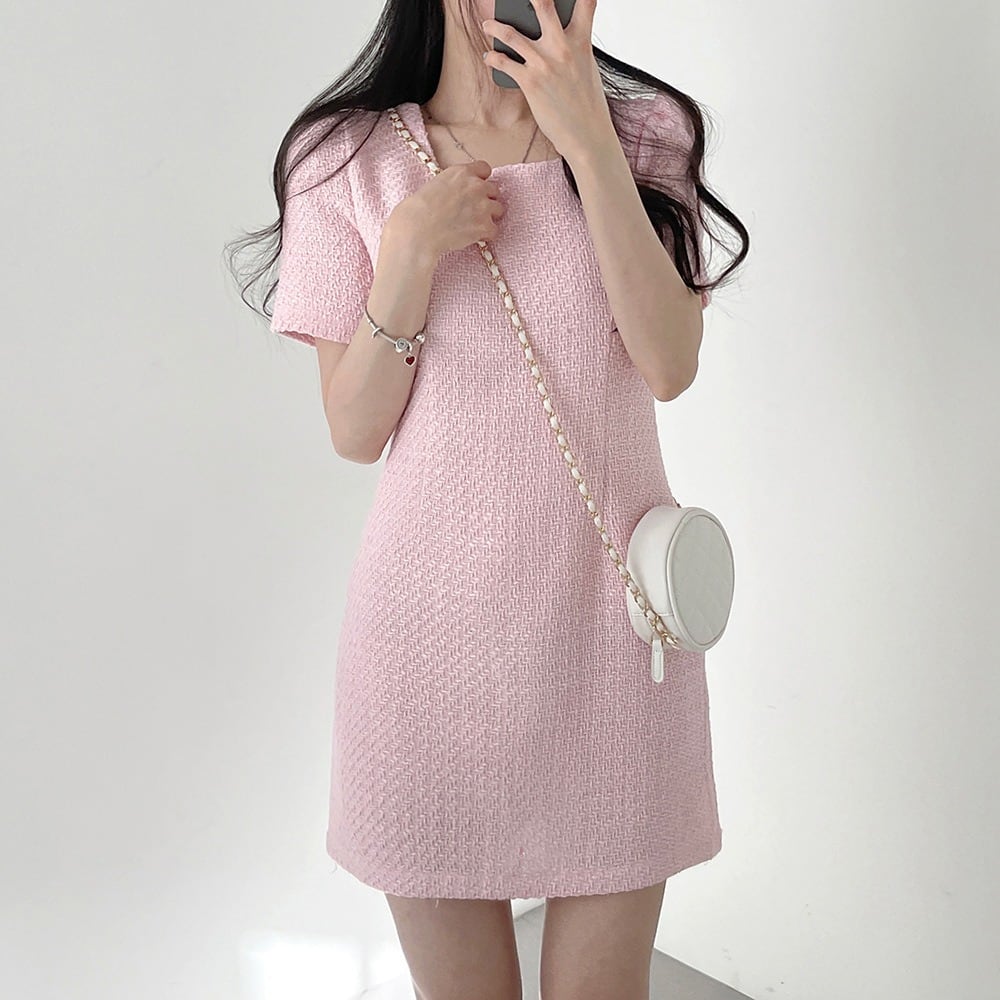 ワンピース ドレス スリム スクエアネック 半袖 きれいめ 大人 カジュアル エレガント お洒落 こなれ感 クール トレンディ 存在感 個性的 オフィス スタイリッシュ お出かけ ショッピング 休日コーデ ビジネス 女子会 休日 ランチ会 普段使い コーデ スタイル 高見え 格上げ インスタ映え 20代 30代 40代 トレンド 華奢見え デートコーデ ワンサイズ ホワイト ピンク イエロー