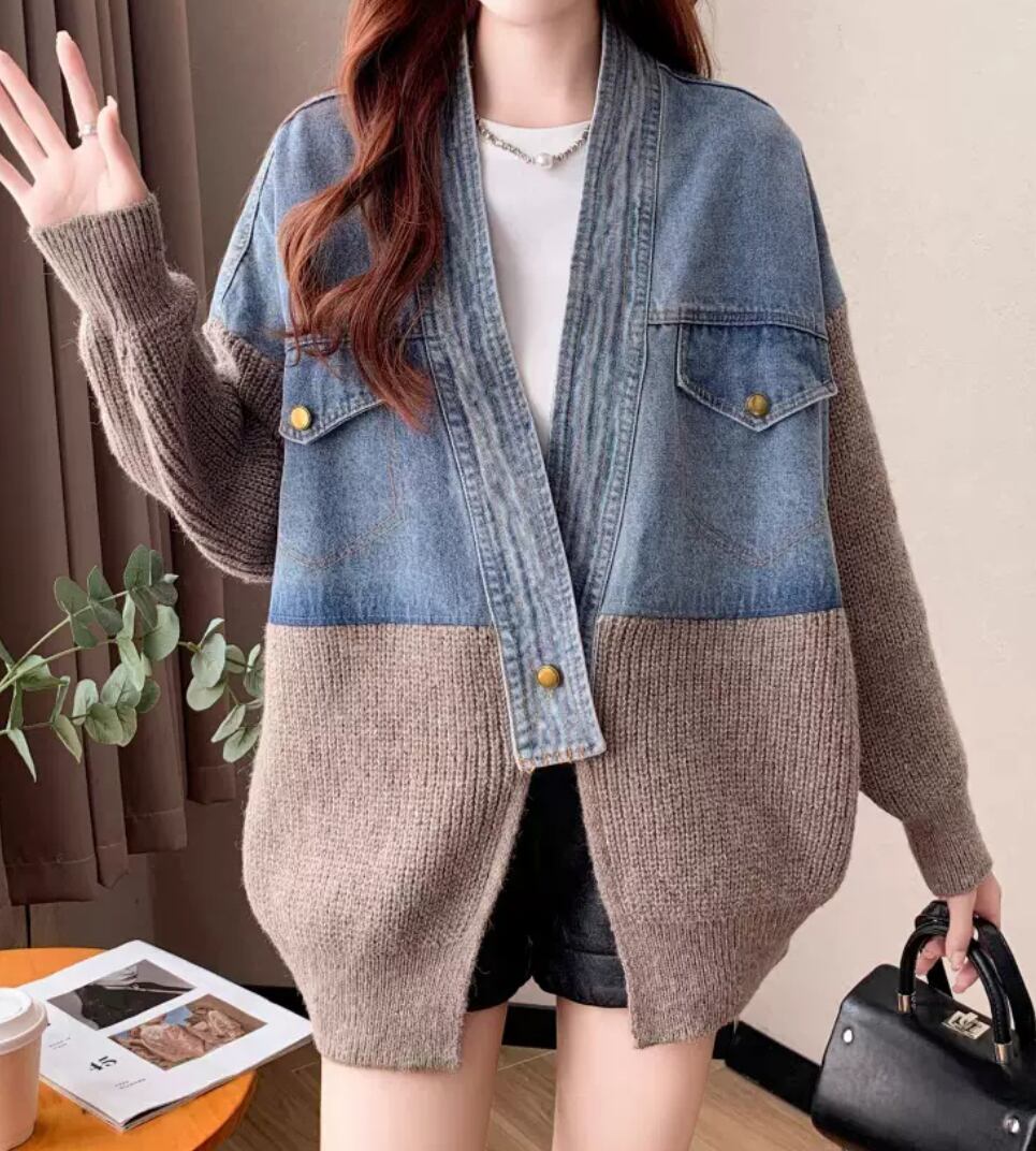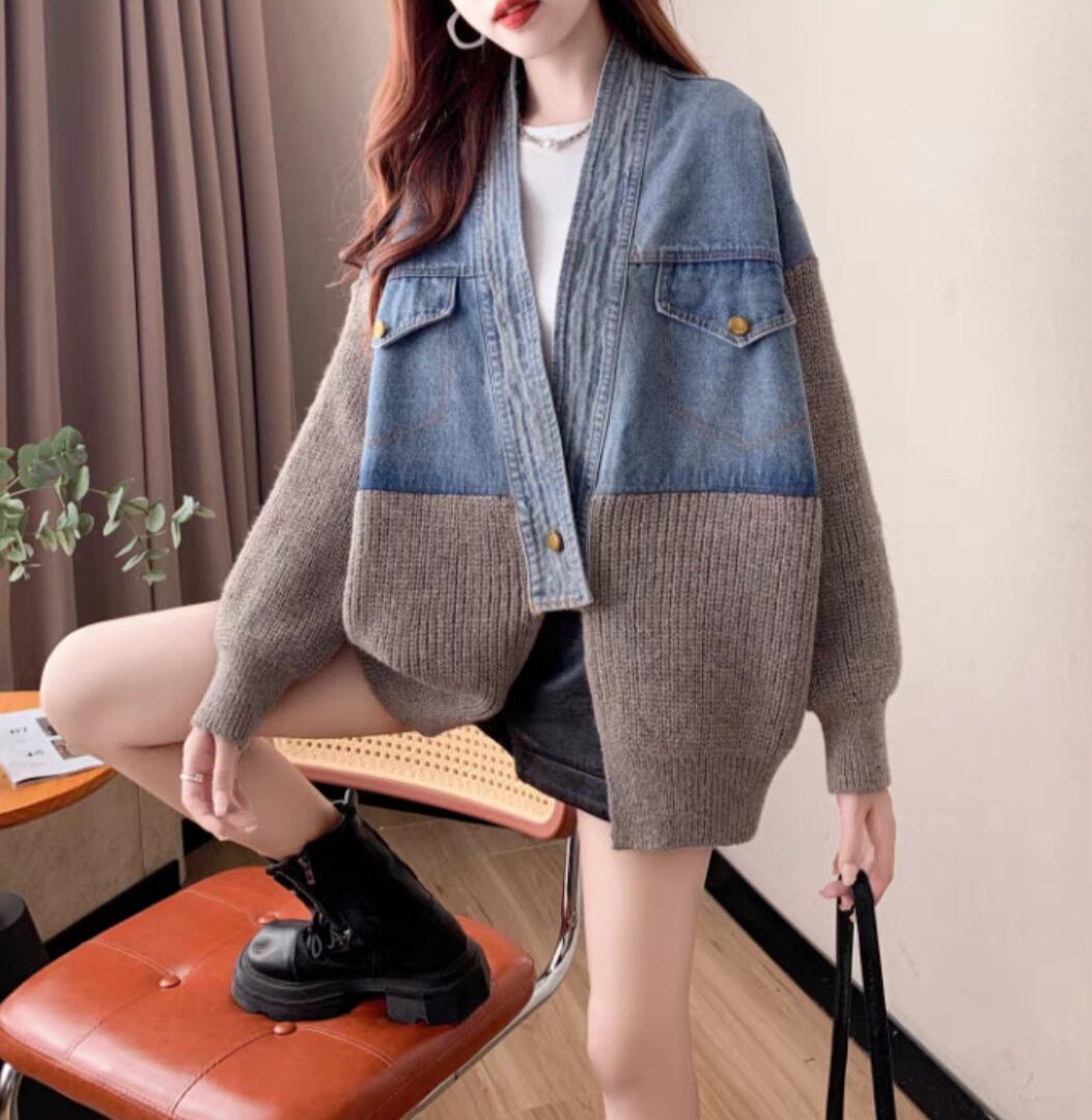 アウター カーディガン 上着 レディース ジャケット 羽織 切り替え ドッキング フェミニン 前開き デニム 異素材ミックス ニット 大人可愛い シンプル カジュアル おしゃれ こなれ感 ラフ マニッシュ スポーティー クール 存在感 抜け感 ベーシック アメリカン アクティブ リラックス 無地 秋 冬 オフィス OL 通勤 イベント 重ね着 韓国 オルチャン コーデ 楽ちん 暖かい 防寒 普段使い 着回し レイヤード トレンド スタイルアップ フリーサイズ ワンサイズ ブラウン グレー オフホワイト
