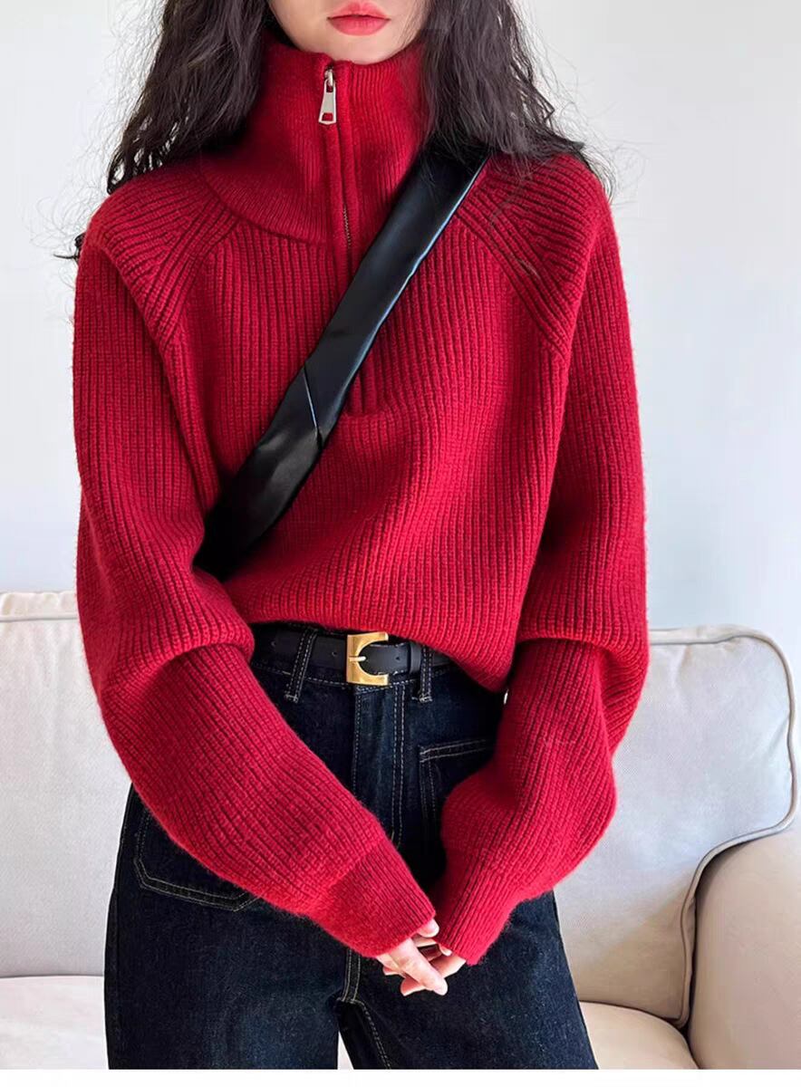 レディース トップス ニット セーター 長袖 ハイネック ボトルネック ハーフジップ オーバーサイズ ローゲージ 厚手 リブニット かわいい 大人可愛い シンプル カジュアル おしゃれ レトロ こなれ感 ラフ ボーイッシュ ルーズ 抜け感 ベーシック アメリカン ナチュラル リラックス エフォートレス アンニュイ Y2K 無地 秋 冬 ママ お出かけ 公園 休日 楽ちん 暖かい 体型カバー 普段使い トレンド 定番 ゆったり ゆる フリーサイズ ワンサイズ ぽっちゃり ホワイト ブラック ブラウン レッド
