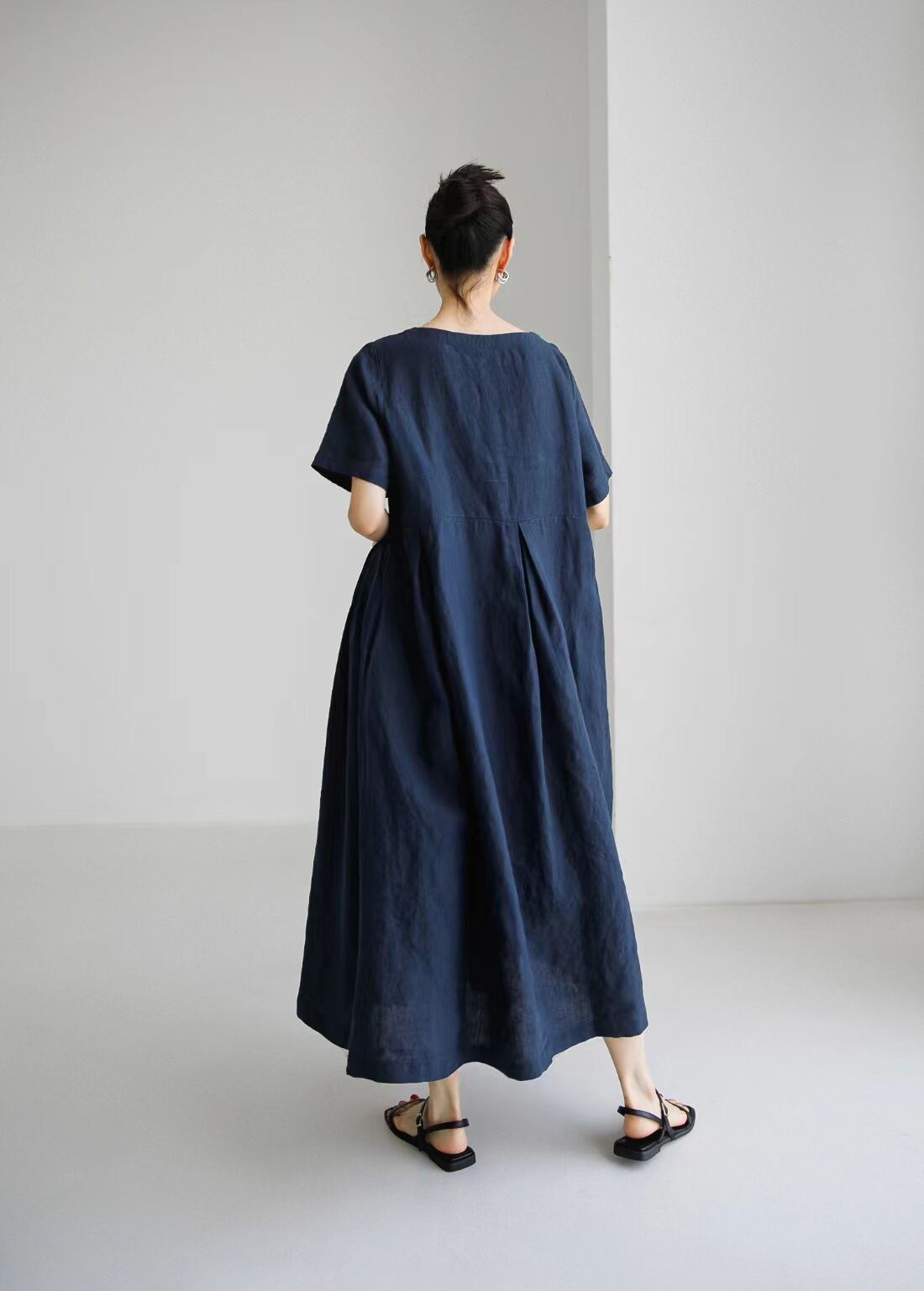 流行のAラインデザインで、上品さと可愛らしさを兼ね備えています。クルーネックと7分袖が特徴で、春夏のデートやお出かけにぴったりの一着です。ラフなのにおしゃれな印象を与えるこのドレスは、普段使いから女子会、お泊まりまで幅広く活躍します!