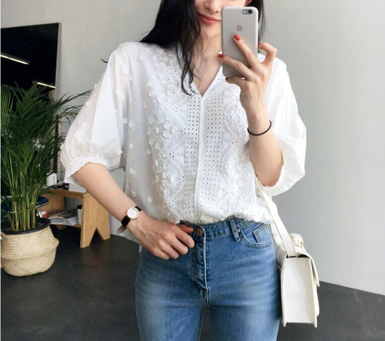 レディース トップス シャツ ブラウス 5分袖 Vネック フェミニン 刺繍 かわいい 大人可愛い きれいめ シンプル カジュアル 上品 おしゃれ かっこいい レトロ こなれ感 ラフ ガーリー ルーズ 個性的 クール モード系 エレガント モダン 主役級 存在感 抜け感 都会的 ラグジュアリー クラシカル ベーシック カントリー ナチュラル 清潔感 涼しげ 軽やか 通気性 春 夏 デート お出かけ お泊まり 公園 女子会 休日 ショッピング モテ 清楚 トレンド 流行 インスタ映え 定番 S M L XL