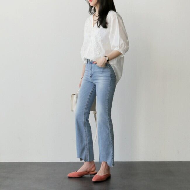 大人可愛いスタイルを実現する、フェミニンな5分袖Vネックシャツ。刺繍が施され、シンプルながらも存在感のあるデザインが特徴の一枚です。カジュアルからきれいめまで幅広く活躍し、特別な日のお出かけや、公園でのリラックスした時間など、様々なシーンであなたを魅力的に演出します!
