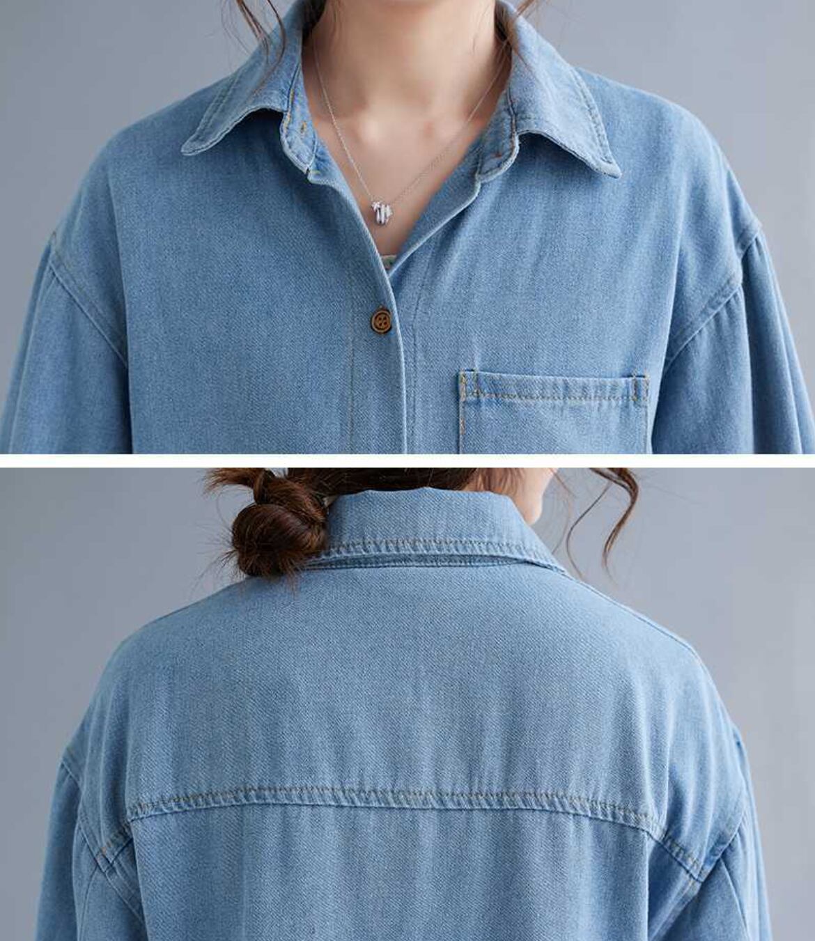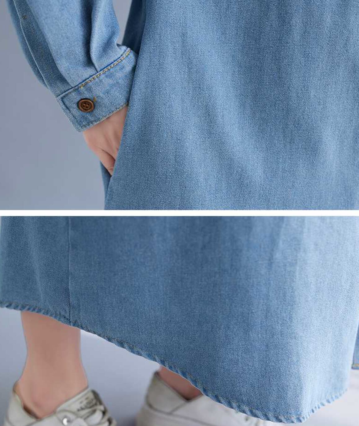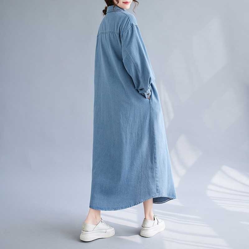 レディース ワンピース シャツワンピ 羽織 前開き 膝下 ロング クロップド丈 長袖 襟付き 角襟 ポケット ボタン シングルブレスト デニム ブルーデニム シンプル カジュアル おしゃれ ラフ 主役級 存在感 ベーシック ナチュラル 清潔感 リラックス 爽やか 無地 春 秋 冬 ロングシーズン ママ マタニティ 学生 デート お出かけ 旅行 女子会 休日 ショッピング カフェ ランチ 重ね着 楽ちん 体型カバー 普段使い 着回し レイヤード 定番 M L XL 2XL 大きいサイズ 水色 ブルー