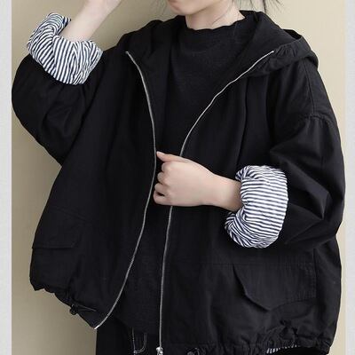 大人可愛いフェミニンスタイルを叶える、レディースジャケットのご紹介です!ドルマンスリーブデザインが特徴で、リラックスした仕上がりながらも、シンプルで上品な印象を与えます。フード付きのジップアップ仕様で、カジュアルなコーディネートにもぴったり。Aラインのシルエットが体型を美しく見せてくれ、こなれ感のあるスタイルを実現します。