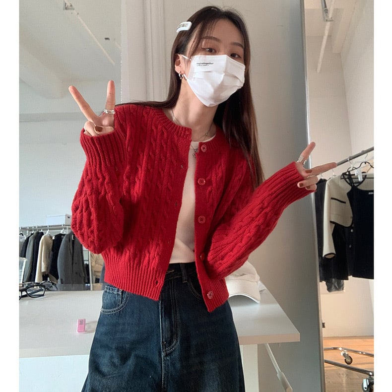レディース トップス ニット セーター カーディガン ショート 長袖 ラウンドネック フェミニン ケーブルニット 中厚手 かわいい 大人可愛い シンプル カジュアル おしゃれ レトロ こなれ感 ラフ ルーズ 抜け感 キュート クラシカル ベーシック プレッピー カントリー ナチュラル リラックス アンニュイ Y2K 牧歌的 秋 冬 ママ 学生 デート お出かけ 公園 休日 韓国 楽ちん 普段使い 着回し 清楚 定番 スタイルアップ ゆったり フリーサイズ ワンサイズ グレー オフホワイト レッド