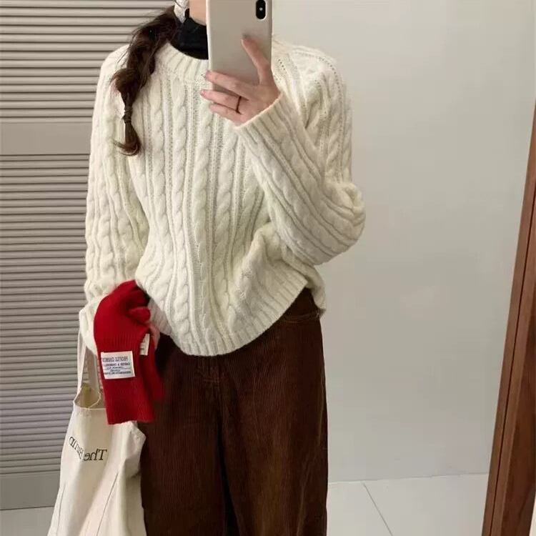 レディース トップス ニット セーター プルオーバー 長袖 ラウンドネック クルーネック 襟なし ノーカラー スリム フェミニン ストリート ケーブルニット アメカジ かわいい シンプル カジュアル おしゃれ ラフ ベーシック ナチュラル リラックス 無地 秋 冬 クリスマス バレンタイン デート お出かけ 旅行 重ね着 コーデ 暖かい 防寒 プレゼント 普段使い 着回し 清楚 定番 ワンサイズ 黒 ブラック グレー イエロー オフホワイト ピンク レッド 緑 グリーン ベーシックカラー 大人カラー