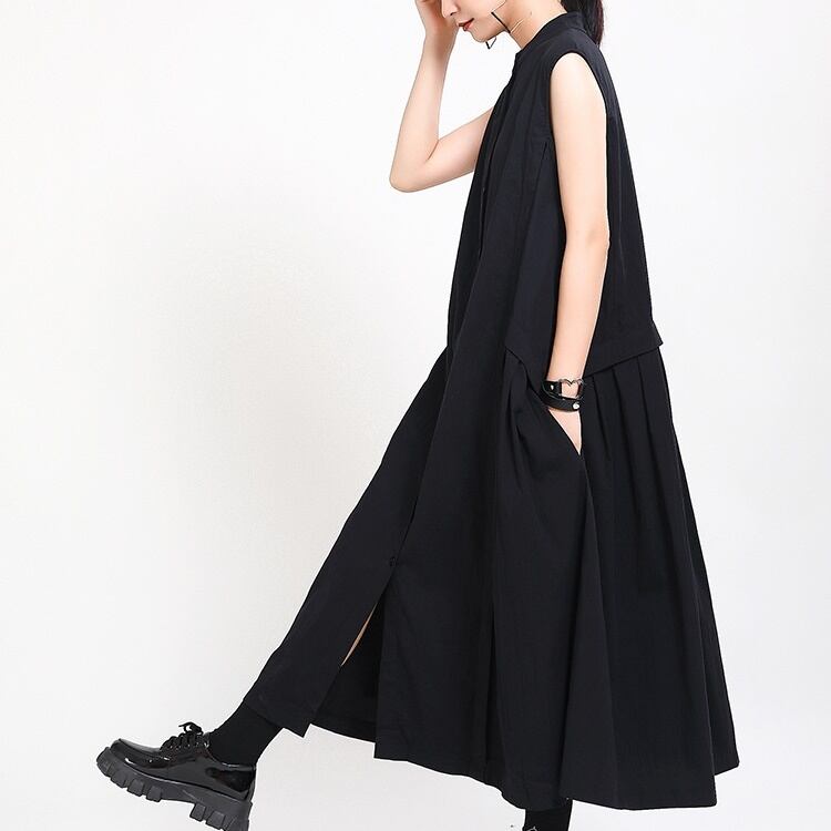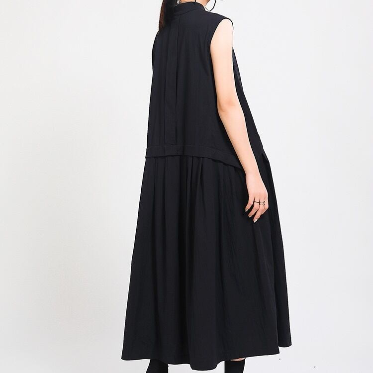 ワンピース ノースリーブ 個性的デザイン フレア 着痩せ レディース ミモレ ハイネック 前開き ボタン かわいい 大人可愛い きれいめ シンプル 上品 おしゃれ かっこいい こなれ感 ラフ マニッシュ 個性的 クール モード系 エレガント モダン 抜け感 都会的 ナチュラル 涼しげ 軽やか シック アンニュイ 無地 モノトーン 韓国 オルチャン 体型カバー 美脚 脚長 普段使い 着回し トレンド 流行 インスタ映え 定番 ゆったり フリーサイズ ブラック ベージュ アースカラー 大人カラー 秋カラー