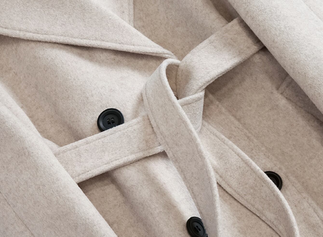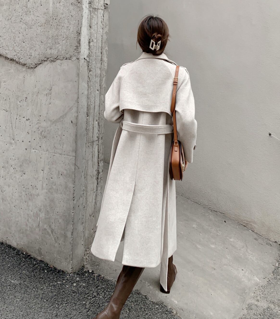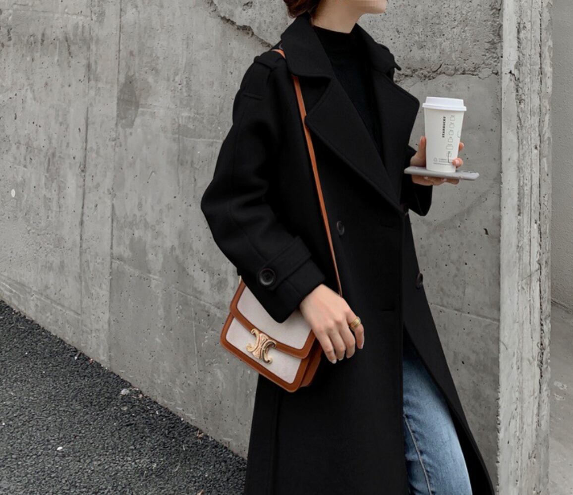 たっぷりと生地を使った丈感は、今年らしいトレンド要素がありながら、縦のラインを強調しスタイルアップ効果も期待できます。優雅なオートミールは、冬のダークトーンになりがちな装いに明るさを加え、顔色を華やかに見せてくれます。また、定番のブラックは、よりフォーマルで知的な印象を与えたい時におすすめです。大きめのラペルと控えめなダブルボタンの配置が、クラシックでありながらモダンな雰囲気を醸し出します。