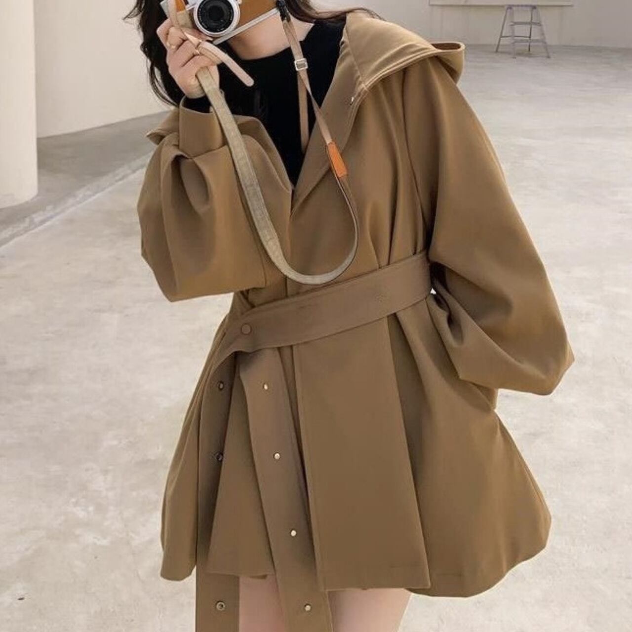 レディース コート アウター 上着 羽織 前開き 膝上 ミディアム 長袖 ボリューム袖 バルーン袖 フード Aライン オーバーサイズ フェミニン ベルト ウエストマーク ポケット ベルト付き かわいい 大人可愛い カジュアル おしゃれ こなれ感 ガーリー 主役級 存在感 キュート ナチュラル 清潔感 無地 春 秋 ロングシーズン デート お出かけ 旅行 女子会 バカンス ショッピング お花見 体型カバー 普段使い 着回し モテ インスタ映え S M L XL ゆったり ブラック カーキ