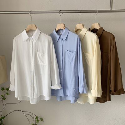 レディース トップス シャツ Yシャツ 長袖 角襟 フェミニン 大人可愛い きれいめ シンプル 上品 おしゃれ こなれ感 ラフ 抜け感 ベーシック ナチュラル 清潔感 涼しげ リラックス 軽やか 通気性 爽やか セクシー 色気 シック 無地 春 夏 秋 会議 MTG ミーティング プレゼン ママ OL 通勤 学生 デート お出かけ お泊まり イベント リゾート 旅行 海 プール レストラン ビーチ 公園 女子会 休日 バカンス 高原 ホテル ガーデン ショッピング コンサート ライブ お花見 合コ