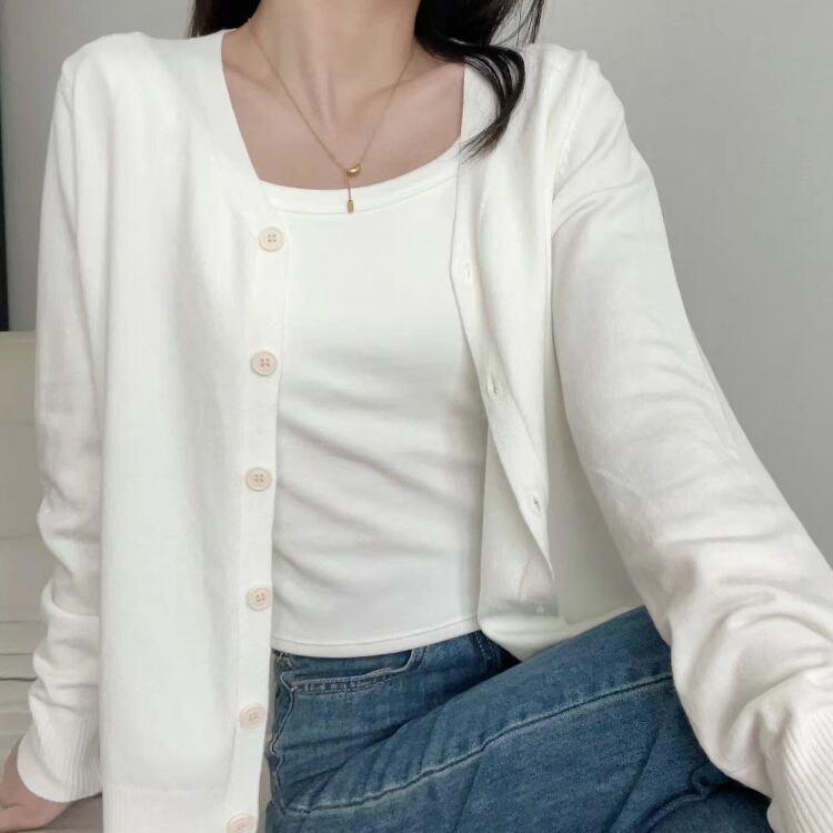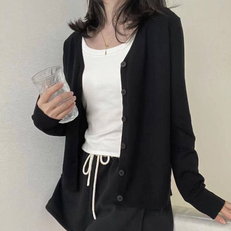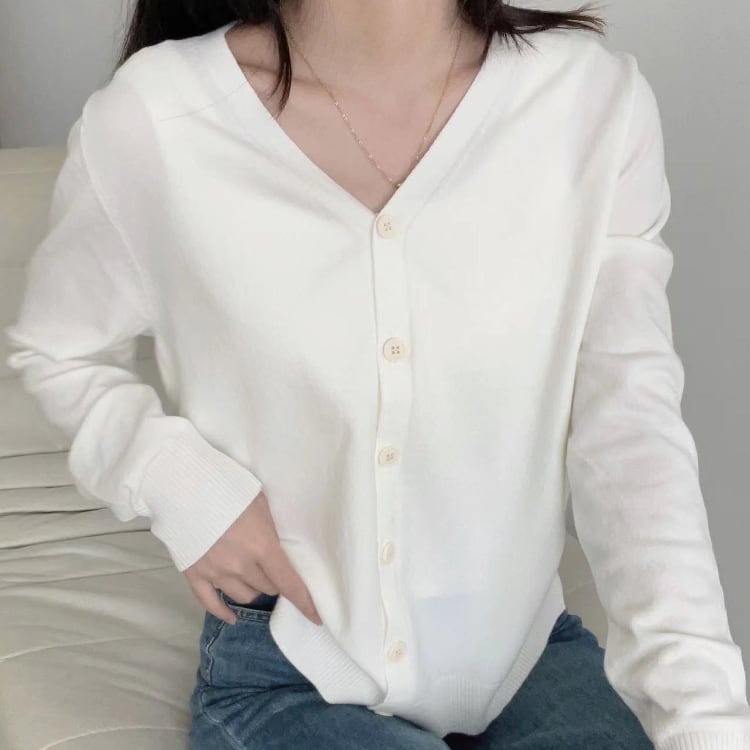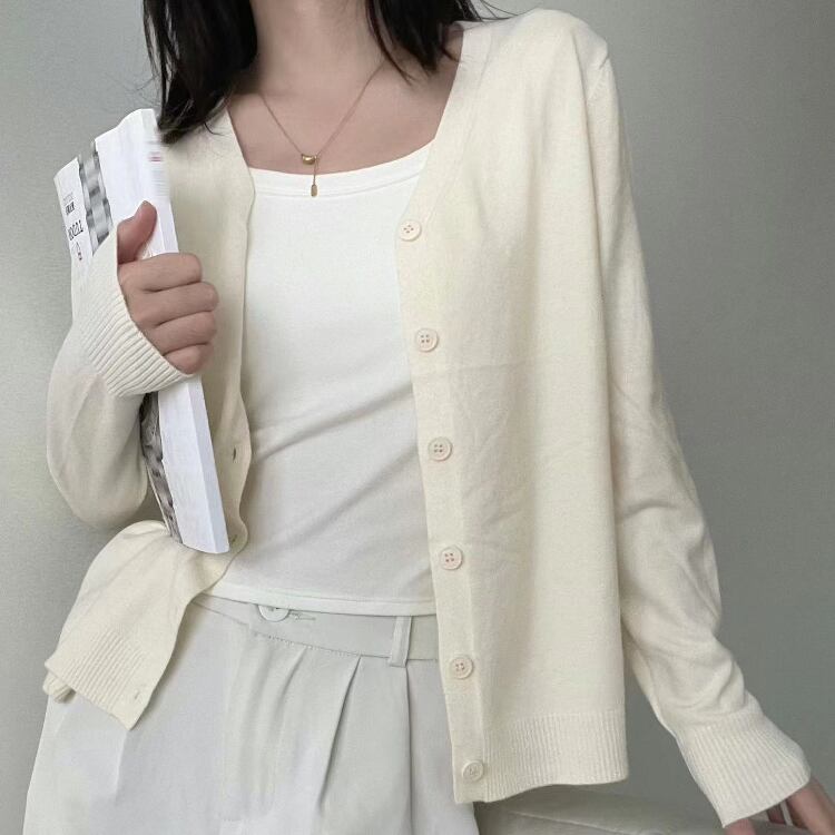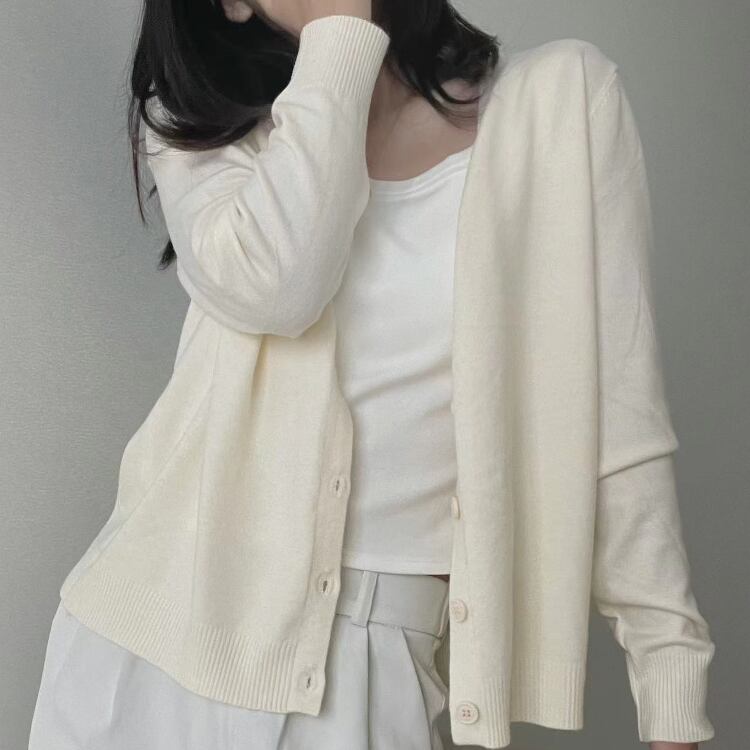 レディース トップス ニット カーディガン 羽織 長袖 Vネック 襟なし ノーカラー フェミニン 前開き コンサバ ボタン 大人可愛い シンプル カジュアル 上品 おしゃれ こなれ感 存在感 クラシカル ベーシック ナチュラル リラックス 軽やか シック 無地 春 秋 ママ オフィス OL 通勤 学生 デート お出かけ 旅行 公園 女子会 休日 ショッピング カフェ ランチ 重ね着 普段使い 着回し モテ 清楚 定番 ワンサイズ 白 ホワイト 黒 ブラック グレー ベージュ ベーシックカラー 大人カラー