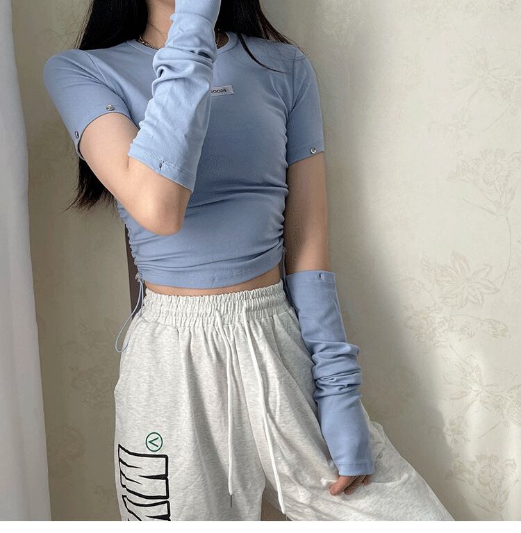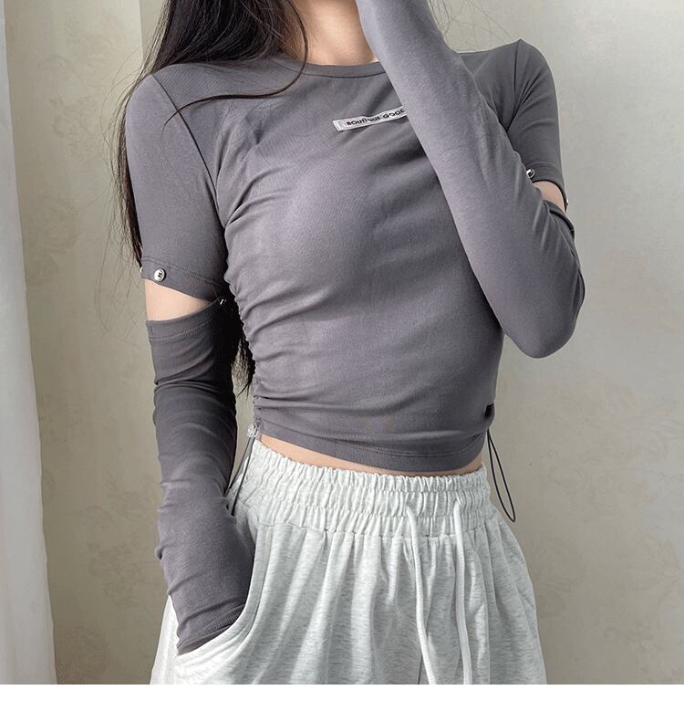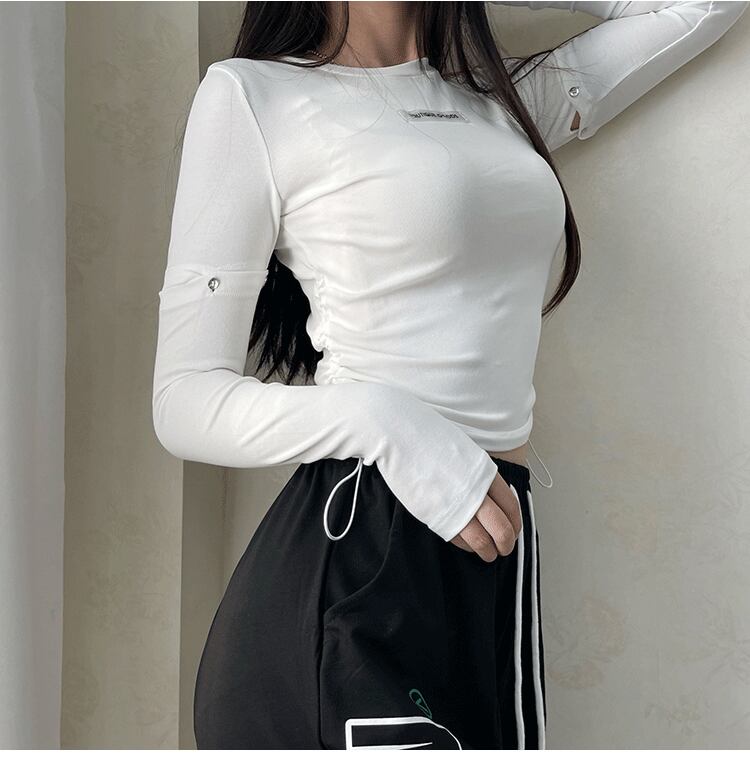 トップス Tシャツ ロンT レディース ショート 長袖 ラウンドネック タイト スリム スマート ロゴ かわいい カジュアル おしゃれ ガーリー ルーズ 個性的 存在感 ラブリー キュート 無地 春 秋 学生 デート お出かけ 休日 ショッピング 脚長 普段使い 着回し トレンド インスタ映え S M ブラック ホワイト グレー ブルー 定番カラー 大人カラー