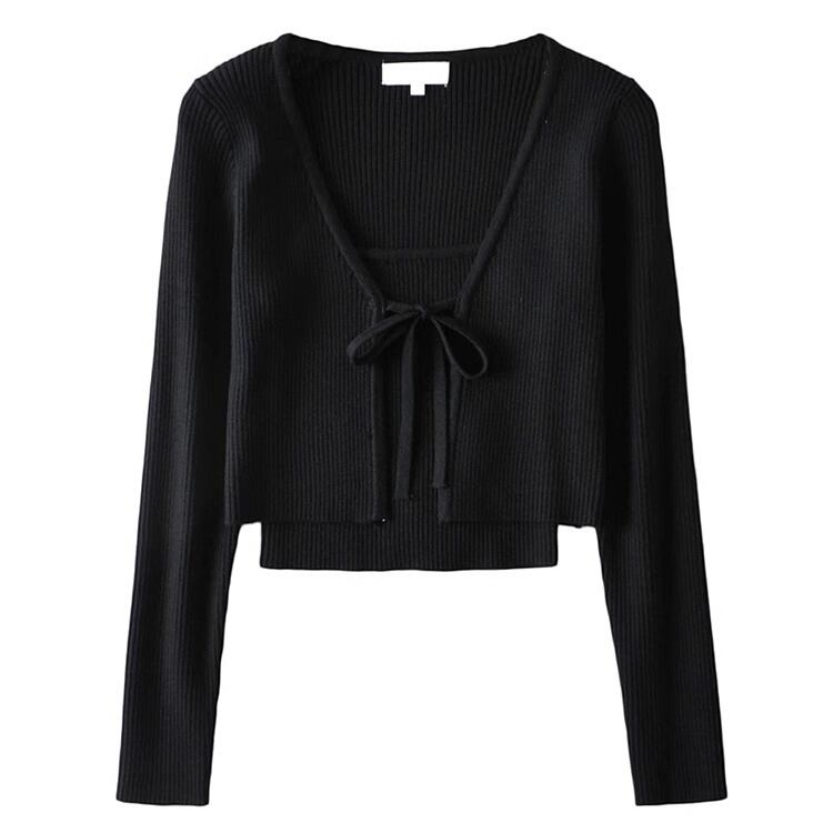 セットアップ トップス カーディガン キャミソール アンサンブル レディース ショート クロップド丈 長袖 キャミソール Vネック タイト スリム 細身 ストレート フェミニン リボン リブニット かわいい 大人可愛い シンプル カジュアル おしゃれ レトロ こなれ感 ガーリー ラブリー キュート ベーシック ロマンティック 無地 春 夏 秋 学生 デート お出かけ 女子会 休日 ショッピング 普段使い 着回し レイヤード S M パープル ブルー ブラック ホワイト 大人カラー