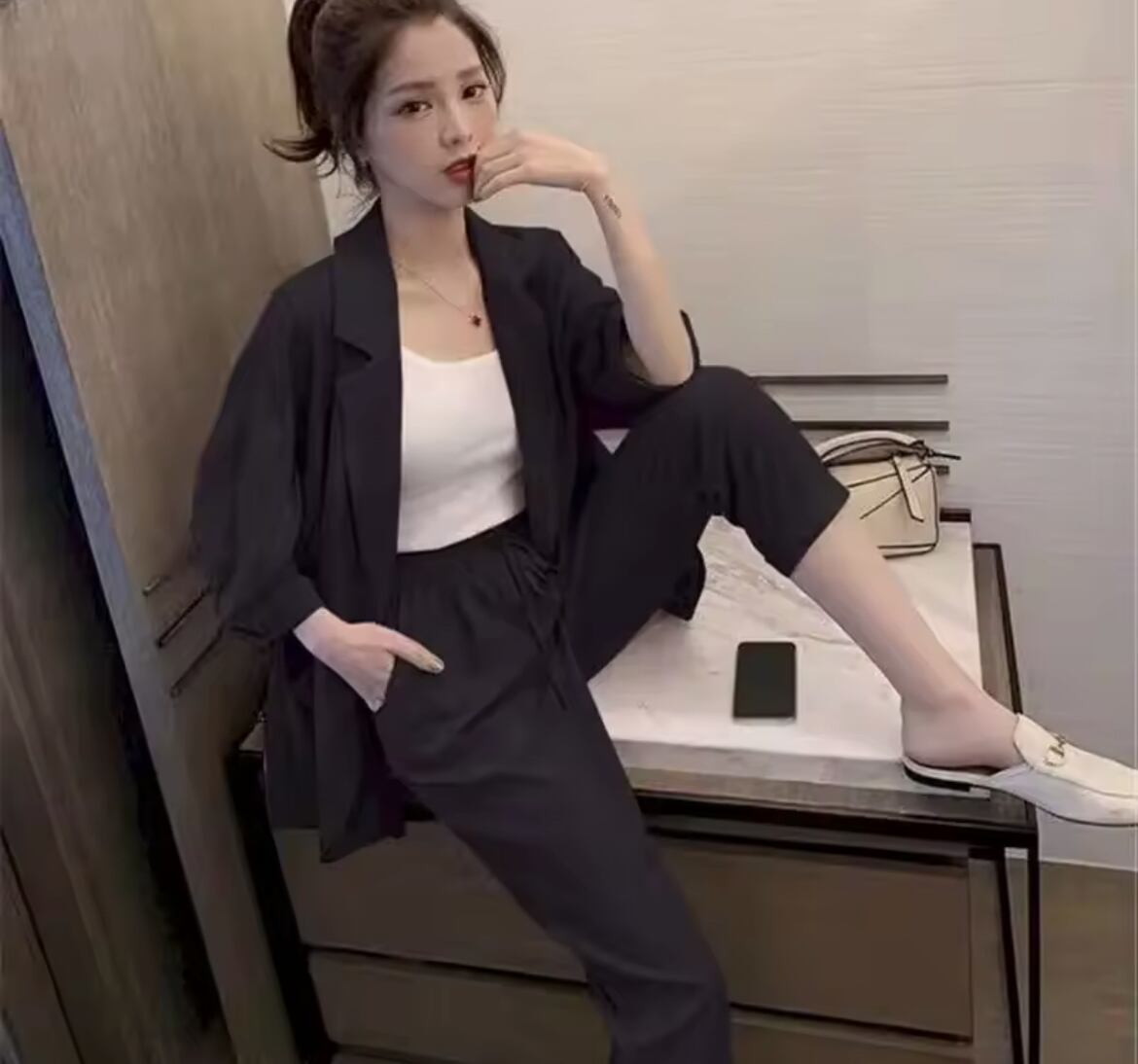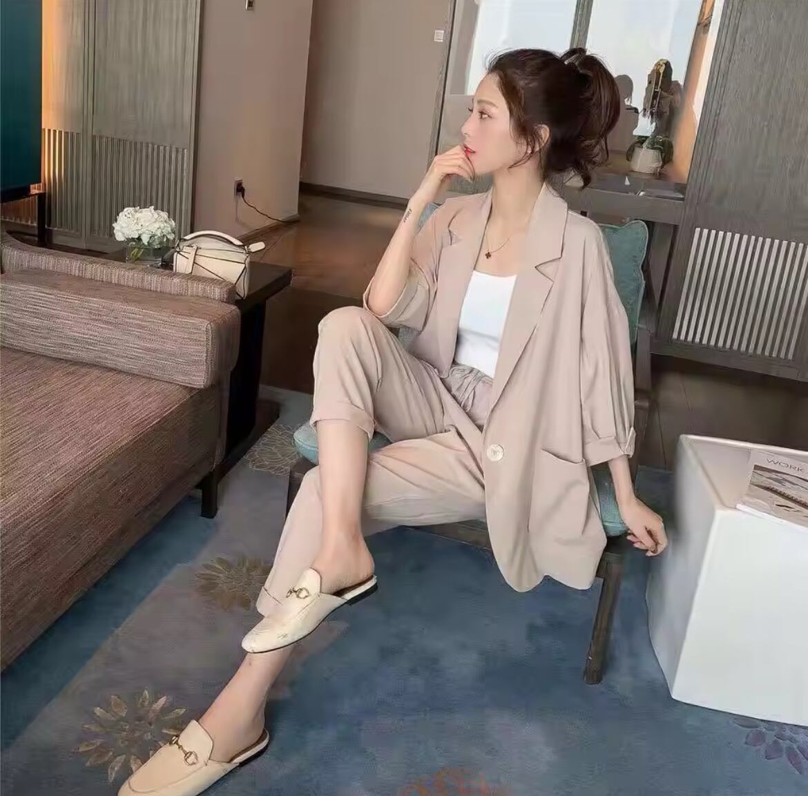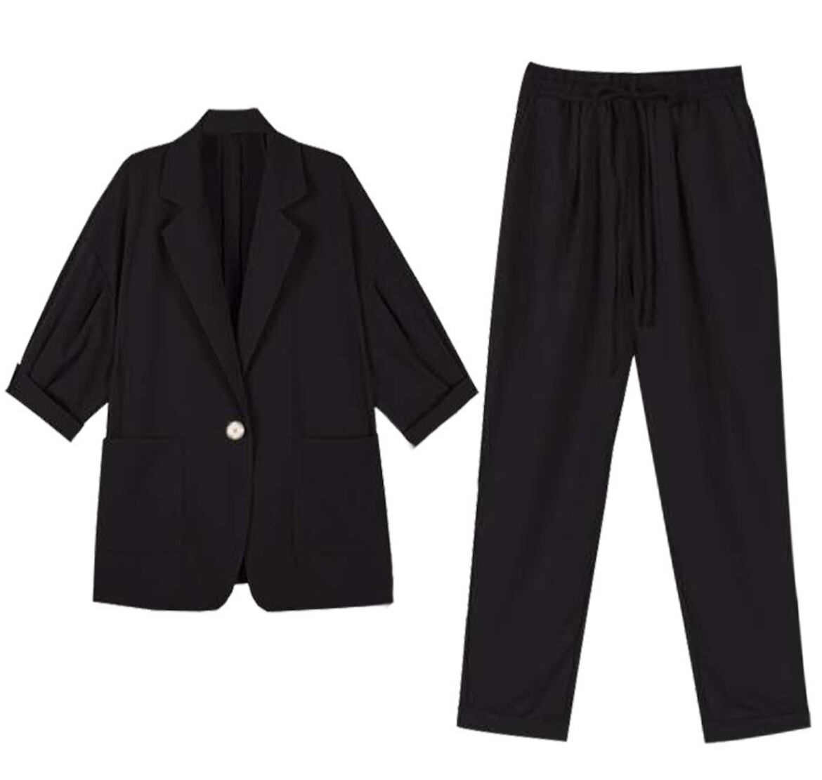 トップス ジャケット パンツ ボトムス スーツ セットアップ レディース 2点セット アンクル丈 5分袖 襟付き ウエストリボン 前開き きれいめ シンプル 上品 おしゃれ こなれ感 ラフ クール モード系 抜け感 リラックス 無地 春 夏 オフィス OL 通勤 デート お出かけ イベント 女子会 休日 ショッピング カフェ ランチ 韓国 オルチャン コーデ 楽ちん 普段使い 着回し ロールアップ 清楚 トレンド スタイルアップ S M L XL 2XL 3XL ゆったり ブラック ピンク アプリコット