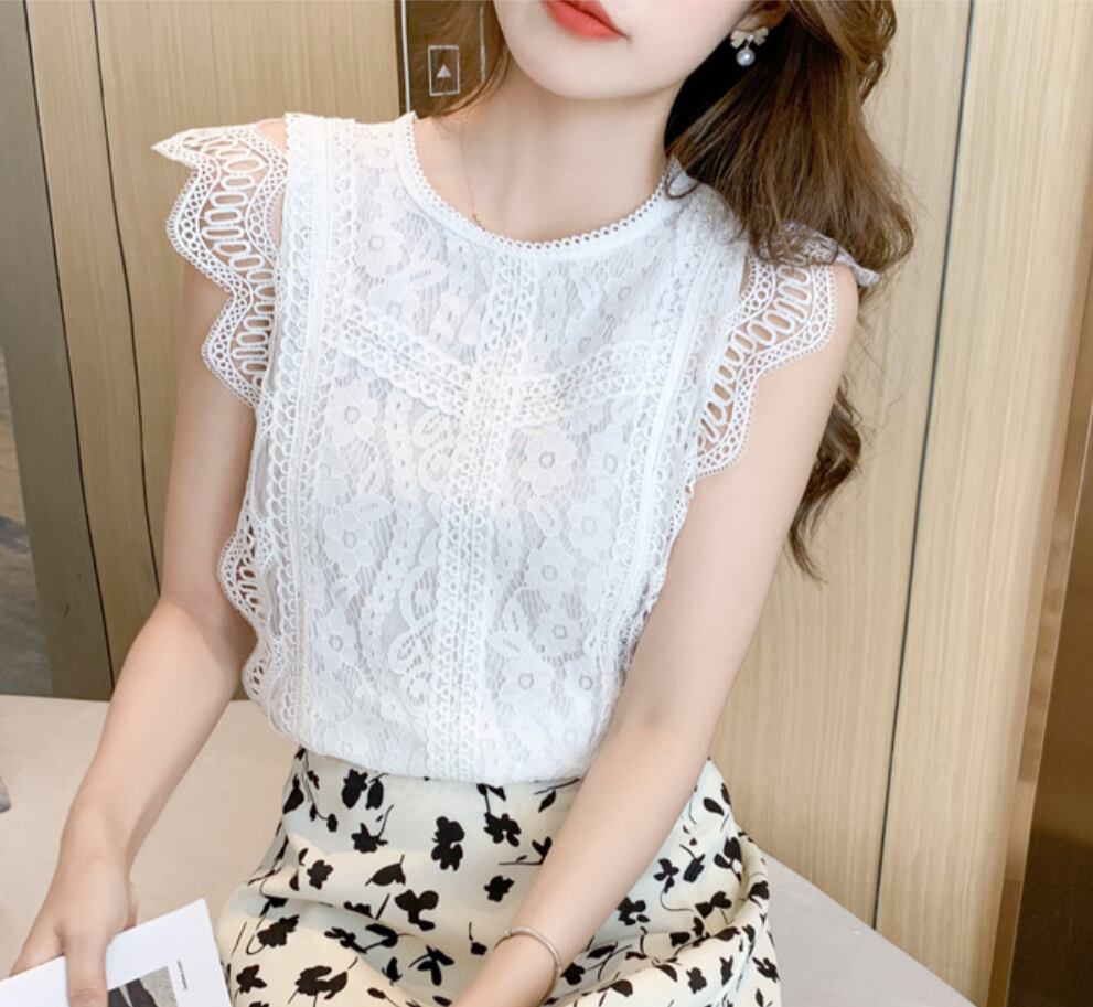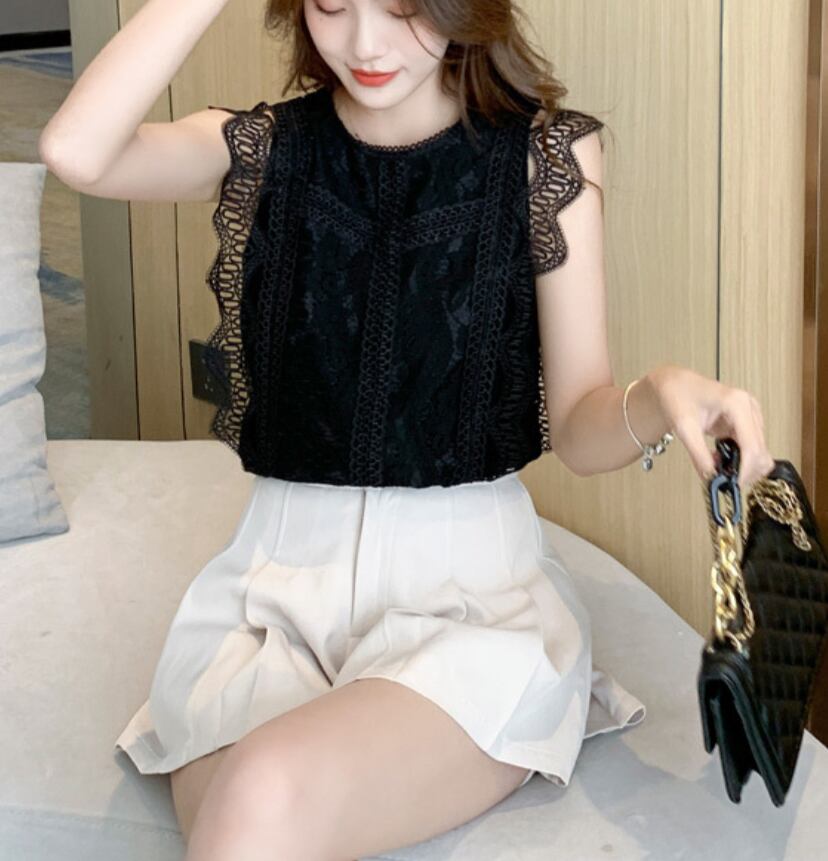 トップス ブラウス レディース クロップド丈 ノースリーブ クルーネック フェミニン レース フリル 大人可愛い きれいめ シンプル おしゃれ こなれ感 ラフ ガーリー ルーズ モード系 とろみ感 抜け感 ラブリー キュート アクティブ 清潔感 軽やか 爽やか ミニマム 春 夏 オフィス OL デート お出かけ イベント 女子会 休日 ショッピング カフェ ランチ 韓国 オルチャン コーデ 普段使い 着回し レイヤード モテ 清楚 トレンド スタイルアップ S M L XL 2XL ホワイト ブラック