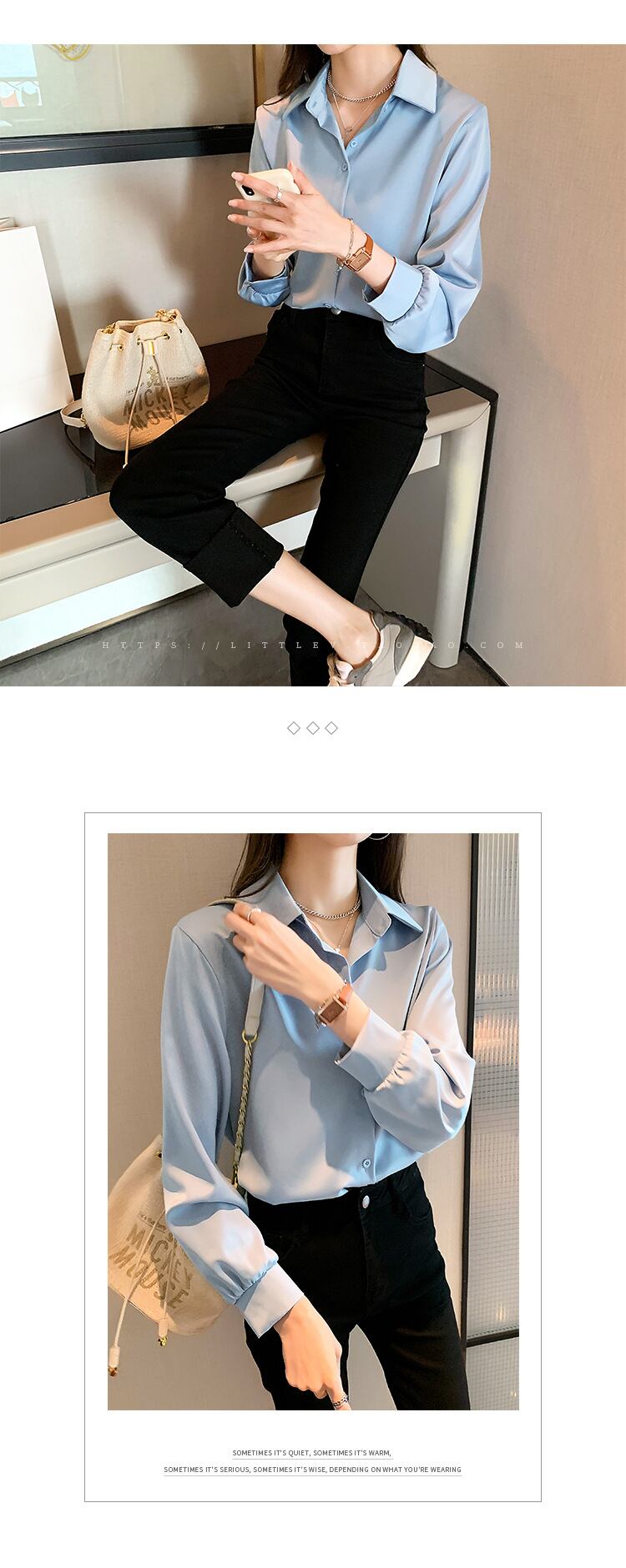 角襟デザインがエレガントで、フォーマルにもカジュアルにも対応可能なシンプルなYシャツです。この7分袖シャツは、清潔感と大人可愛い印象を与え、春、夏、秋、冬とオールシーズン使える万能アイテムです。軽やかなとろみ感のある素材が、都会的で上品な雰囲気を演出します。ビジネスシーンやデート、お出かけの際にもぴったりです!