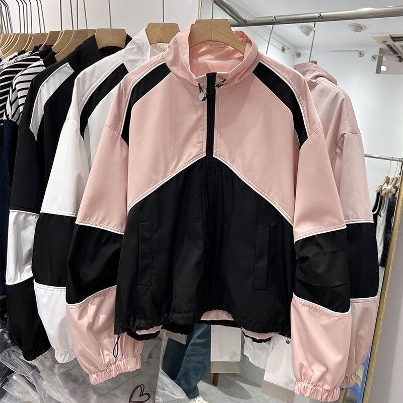 レディース ジャケット ブルゾン アウター 羽織 前開き ショート ミディアム ミドル 長袖 ドロップショルダー スタンドカラー ジップアップ ストリート バイカラー カジュアル かっこいい メンズライク ボーイッシュ スポーティー 個性的 主役級 存在感 アクティブ 軽やか 春 秋 冬 ロングシーズン お出かけ アウトドア キャンプ ショッピング お花見 カフェ ランチ ウォーキング マラソン 登山 ダンス 防寒 M L XL 2XL 3XL 4XL 大きいサイズ ホワイト ブラック ピンク 大人カラー