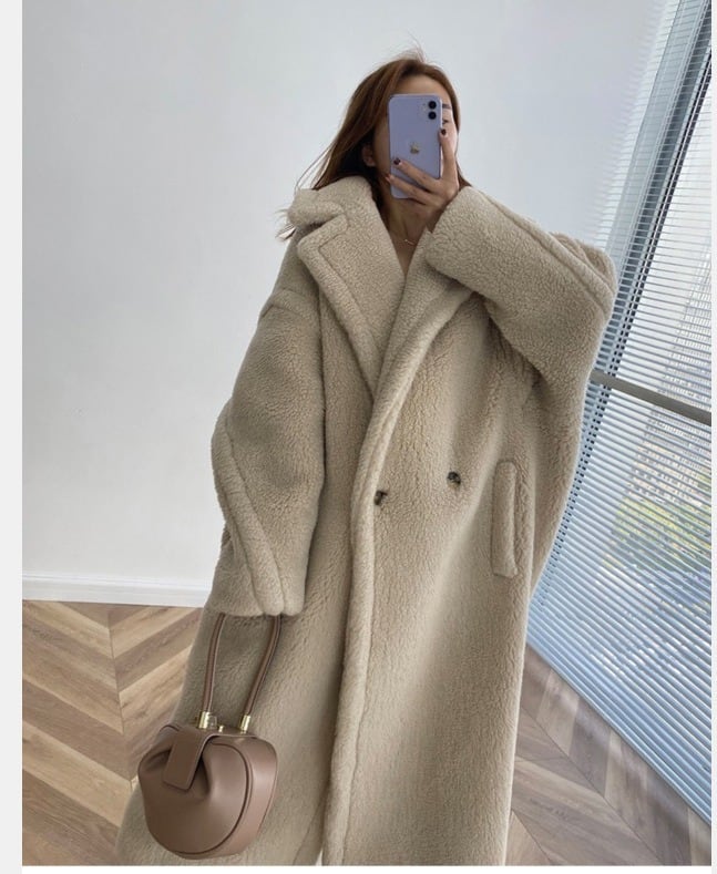 レディース コート アウター 上着 テディベアコート 膝下 ミモレ 丈長 ミディアム 長袖 ドロップショルダー Vネック 襟付き 角襟 フェミニン もこもこ ふわふわ ポケット ボタン ダブルブレスト かわいい 大人可愛い カジュアル おしゃれ こなれ感 個性的 主役級 存在感 抜け感 ラブリー キュート 無地 秋 冬 ロングシーズン クリスマス バレンタイン 学生 通学 デート お出かけ リゾート 旅行 ショッピング カフェ ランチ 重ね着 暖かい 防寒 着回し トレンド 流行 インスタ映え S M