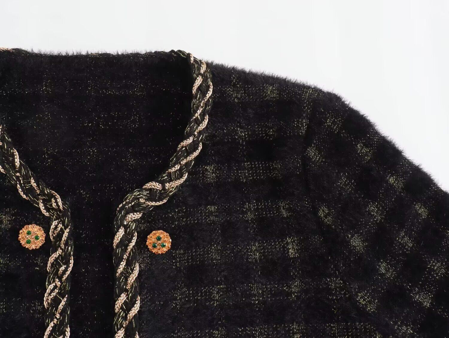 永遠の定番アイテムであるツイードジャケットのエッセンスを取り入れた、上品で華やかなカーディガンです。最大のポイントは、ネックライン、前立て、裾、ポケットのフチにあしらわれた三つ編み状のブレードパイピング。首元がすっきり見えるノーカラーデザインなので、インナーを選ばず、タートルネックやブラウスとも好相性。また、アクセサリーの重ね付けも美しく決まります。一枚羽織るだけで、いつものコーディネートを格上げしてくれる、大人の女性のためのマストハブアイテムです。